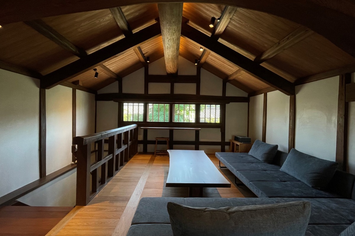 「日本郷土玩具館」に隣接する江戸時代に建てられた蔵を改修した、小さなテラスのある一棟貸しの宿です。2階にリビングとベッドルームがあり、窓からは倉敷川が望めます。