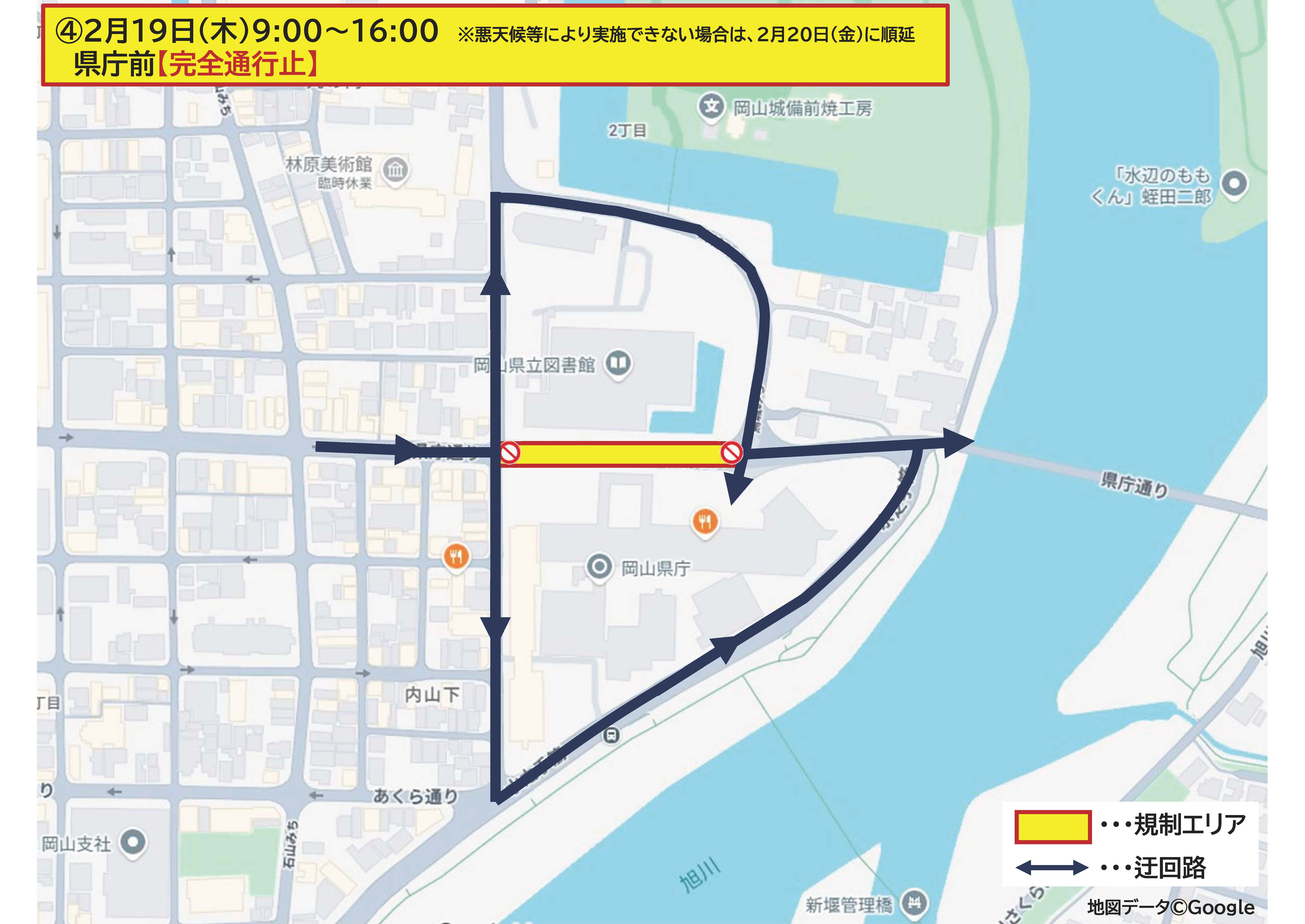 ④2月19日(木)9:00~16:00 県庁前 完全通行止