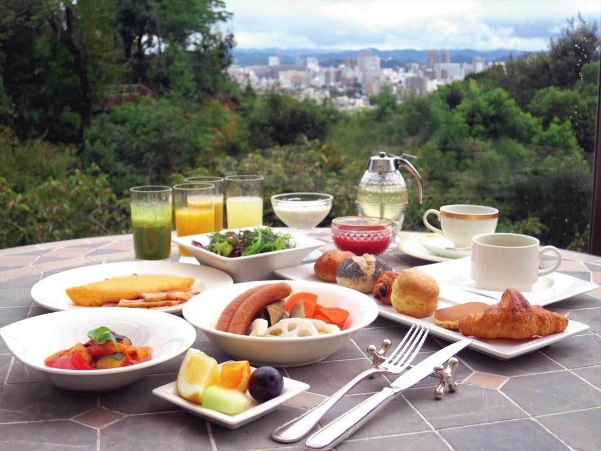小高い山の上に建ち、豊かな自然に恵まれており、四季折々の風情を楽しめます。市街地側の客室からは天気が良ければ、後楽園、岡山城を望めます。