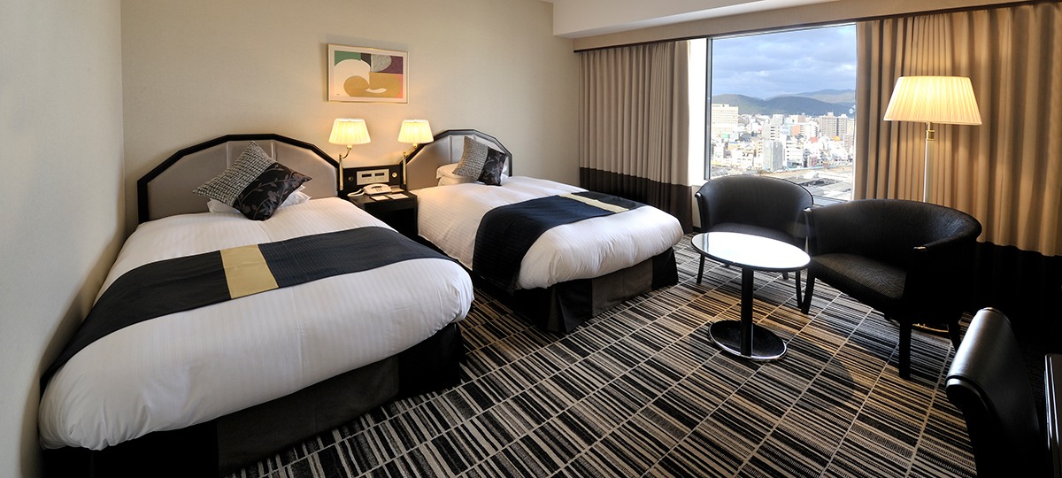 岡山駅前に立つ街のランドマーク。洗練されたサービスで、訪れるすべてのお客様にくつろぎに満ちた至福のひと時をお約束します。館内には洋食、和食、中華と7店舗あり、最上階のスカイラウンジからは岡山の市街が一望できます。