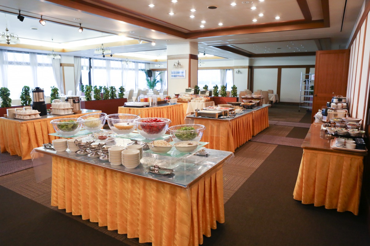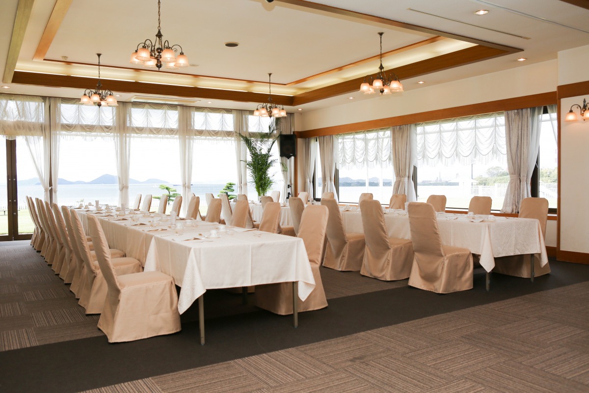 会議室、宴会場、大浴場、レストラン、売店、広い芝生、プール