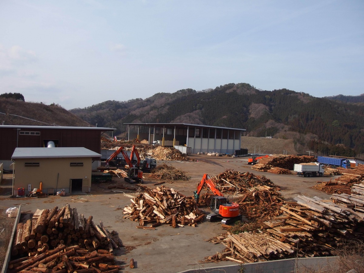真庭市概要説明⇒真庭バイオマス集積基地⇒真庭バイオマス発電所(木材を燃料とする発電所)⇒公共施設の発電利用(真庭市役所本庁舎)