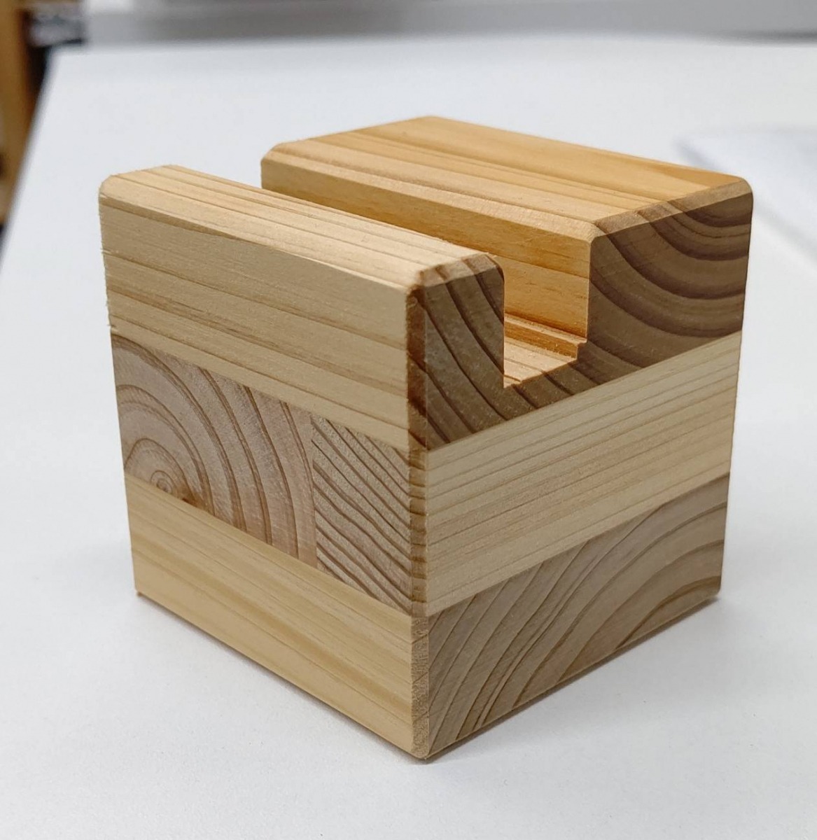建築家の隈 研吾氏が設計した施設「GREENable HIRUZEN(グリーナブル蒜山)」見学⇒CLTのスタンドを自分なりに紙ペーパーで研き、オリジナルのスマホスタンドにしていく体験