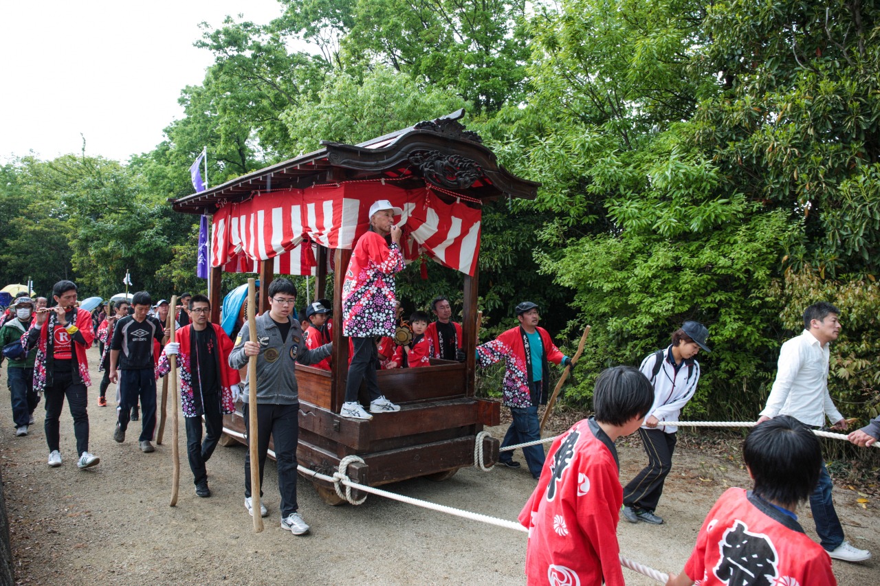 大賀島の客殿で「しゃぎり」が奉納され、市指定重要文化財の神楽やだんじりが賑やかに巡行する祭りです。
