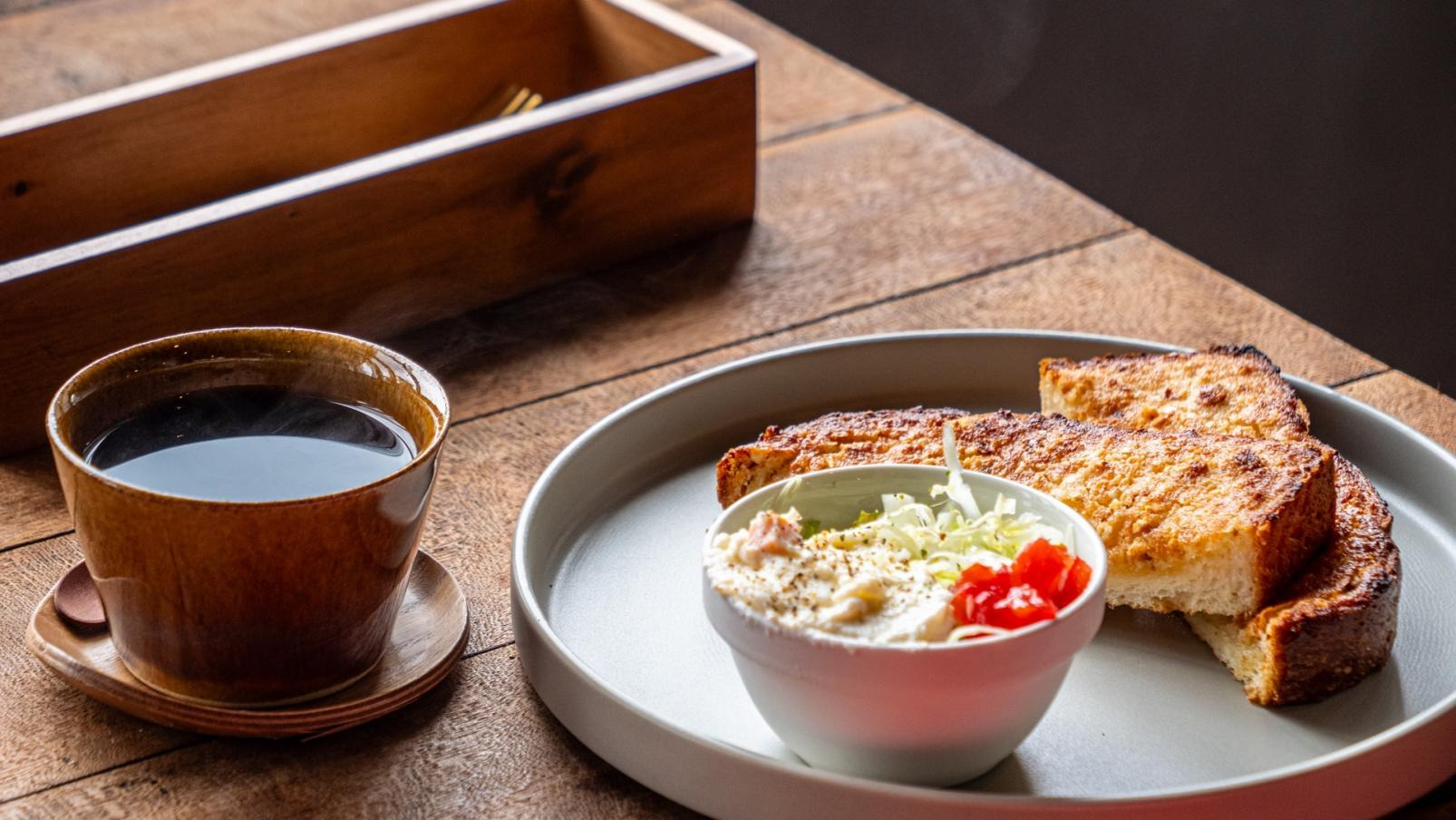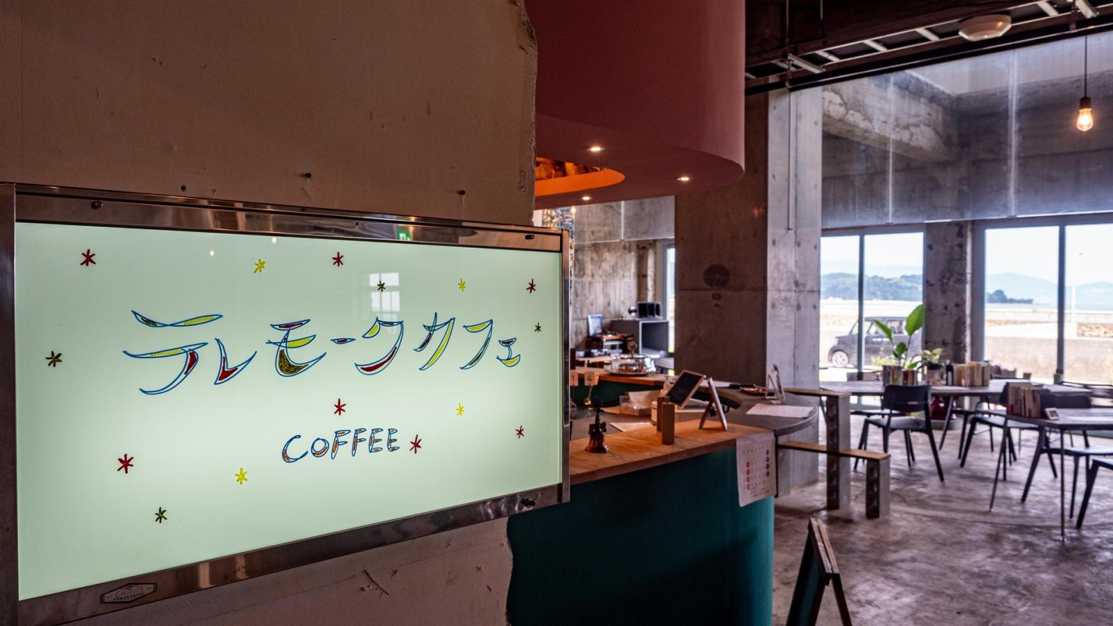 テレモーク正面玄関入ってすぐのカフェ。こだわりのコーヒーやスウィーツなどが楽しめる共有スペースでゆっくり過ごしたりテレワークにオススメ。