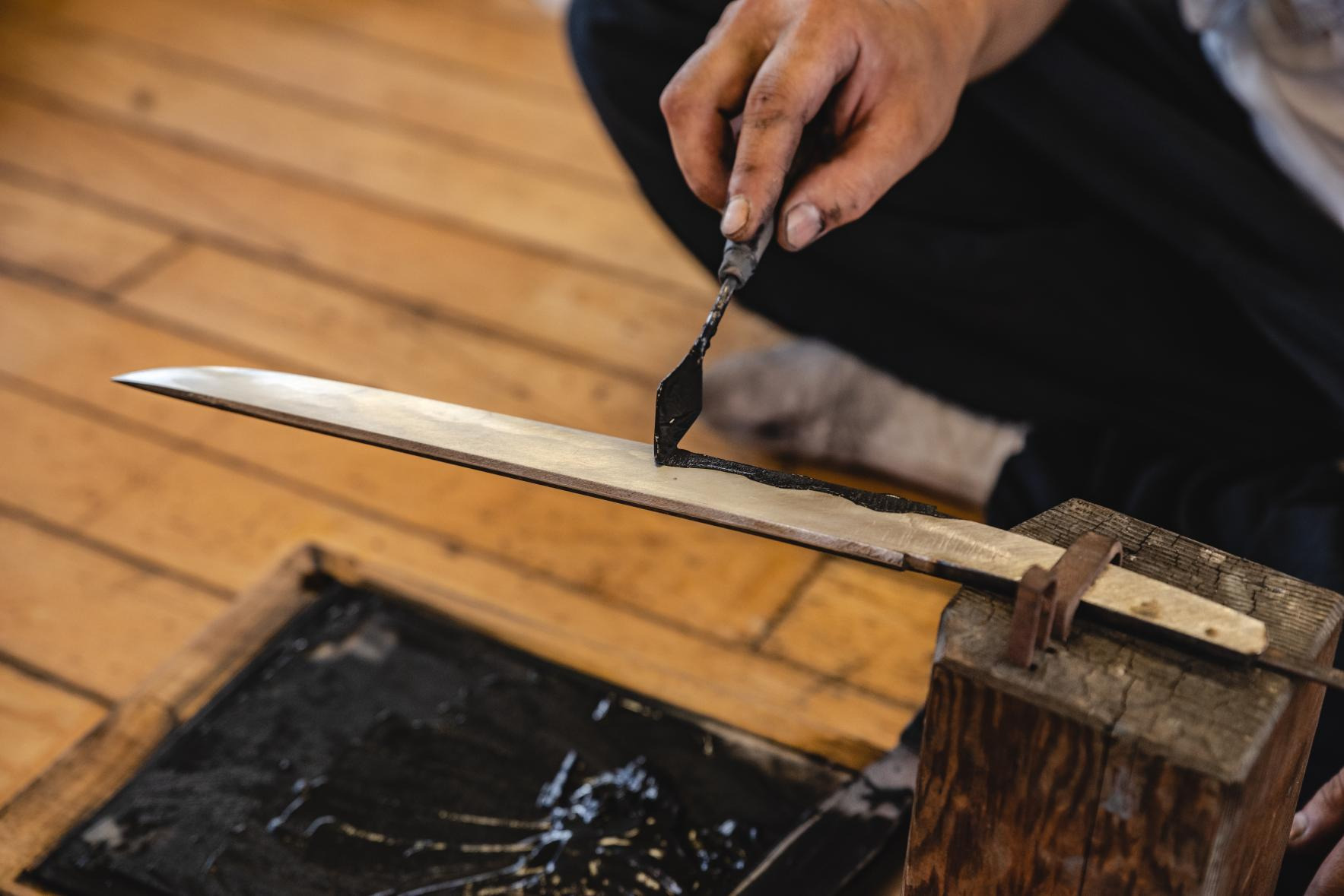 中でも特徴的なのは工房見学。刀の制作は複数の職人による分業制となっており、鋼を打って刀身を成形する鍛錬以外にも、銘の彫刻や刃の研ぎ、柄巻や鞘の塗りまで様々な工程を経て完成します。月に何日か、研師(とぎし)、柄巻師(つかまきし)、鞘師(さやし)が来場し、その技術を惜しみなく披露してくれます。普段目にすることのない職人達の手仕事は、日本刀に対する理解を一層深めるものとなるでしょう。