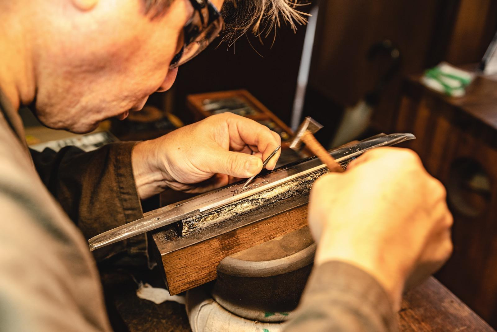 刀身に立体的な造形美を作り出す刀身彫刻は、日本刀の美しさをさらに引き出す芸術です。