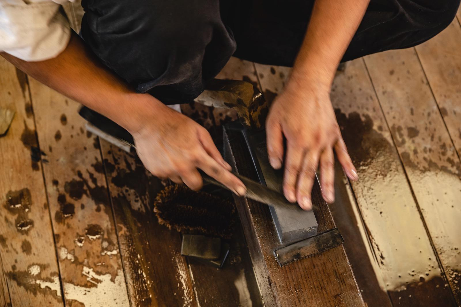 研師は、新作の刀剣を研磨するのに加え、既存の古い刀剣を美しく保存するために研磨することもあります。刀鍛冶が鍛えた刀をいかに美しく仕上げるかは、研師の腕にかかっています。