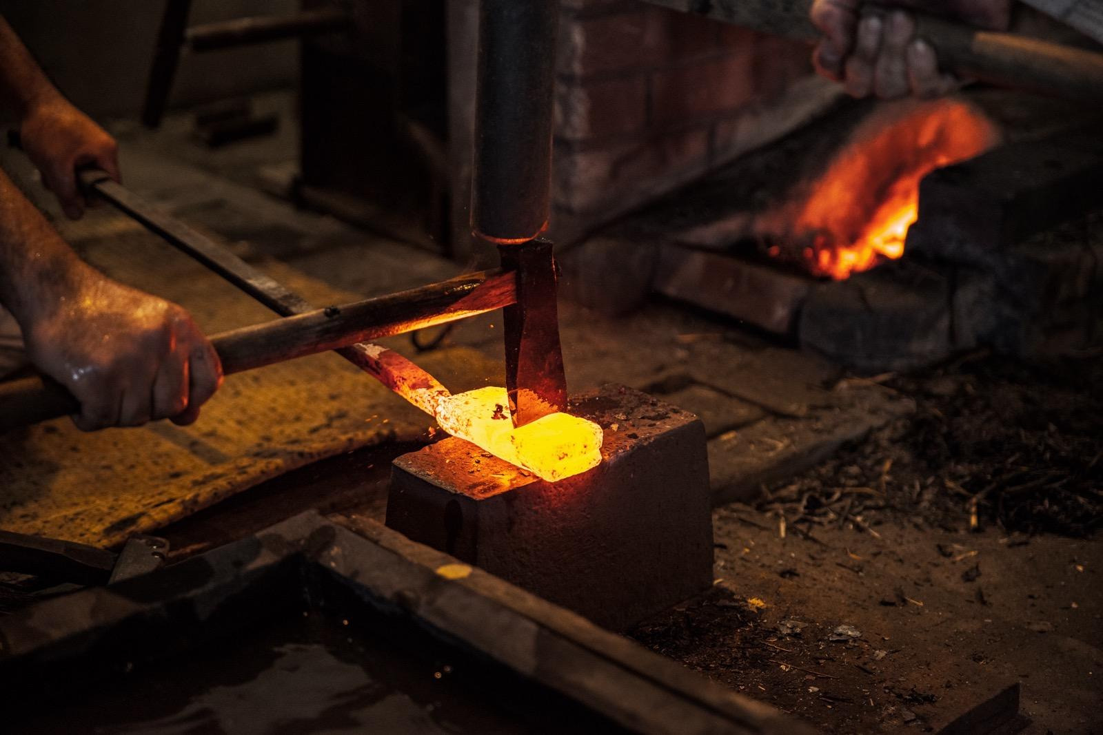 玉鋼(たまはがね)を鍛えて刀身を作る職人のことを刀鍛冶(かたなかじ)と称します。作刀の技術は一子相伝(いっしそうでん)によるもので、古い時代の刀鍛冶たちがどのような手法で刀剣を打っていたのか、詳細は分かっていません。現在行われている作刀工程は、江戸時代末期の刀鍛冶「水心子正秀(すいしんしまさひで)」によってまとめられたものを基本としており、それぞれの刀鍛冶の手で改良を加えながら伝えられています。