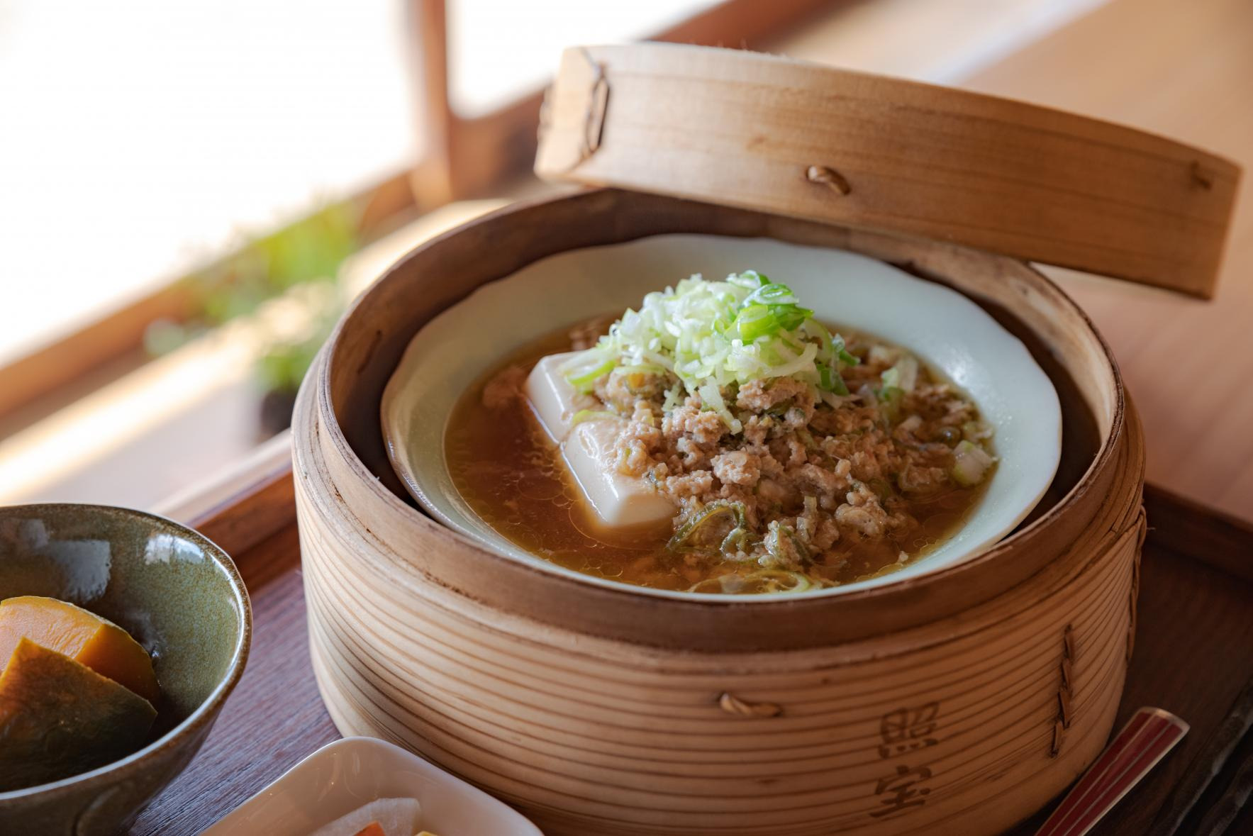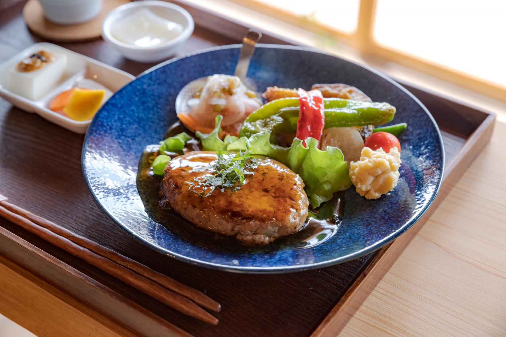 田園風景の中に佇むおおよそ築100年の古民家をセルフリノベーションしたカフェ。訪れたお客様の中には「おばあちゃんの家を思い出します」と、懐かしがる方も多いとか。大きくひらけた縁側から射し込む陽光を浴びて、ひなたぼっこしたくなる、そんなゆったりとした空間で頂けるのは”セイロ”で供される野菜たっぷりのランチ。おすすめの「ひなたん定食」は、黒豆をベースにくるみや野菜で作るベジバーグとたっぷり添えられた蒸し野菜で、味・ボリュームともに大満足の一品です。添加物、保存料、化学調味料を使わず、地元産の旬の野菜など食材の持ち味をいかし、優しい味わいに仕上げられた料理の数々を口に運べば、作り手の温かな心がじんわりと伝わってきます。