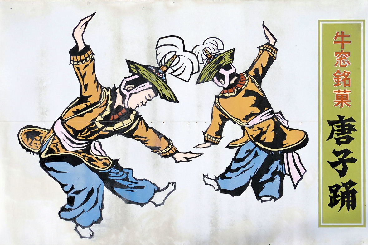 「唐子踊まんじゅう」カステラ生地に赤白のこしあんを包んで焼いた手焼きのおまんじゅうです。牛窓秋祭り(牛窓神社秋季例大祭)で、疫神社(やくじんじゃ)で奉納される唐子踊にちなんだ焼き菓子です。