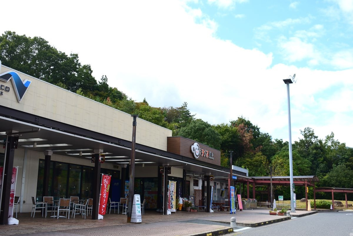 玉島の山すそのにあるパーキングエリア。スナックコーナー・フードコート 、ショッピングコーナーなどがあります。 かわいい桃太郎たちのオブジェと写真を撮ることもできます。