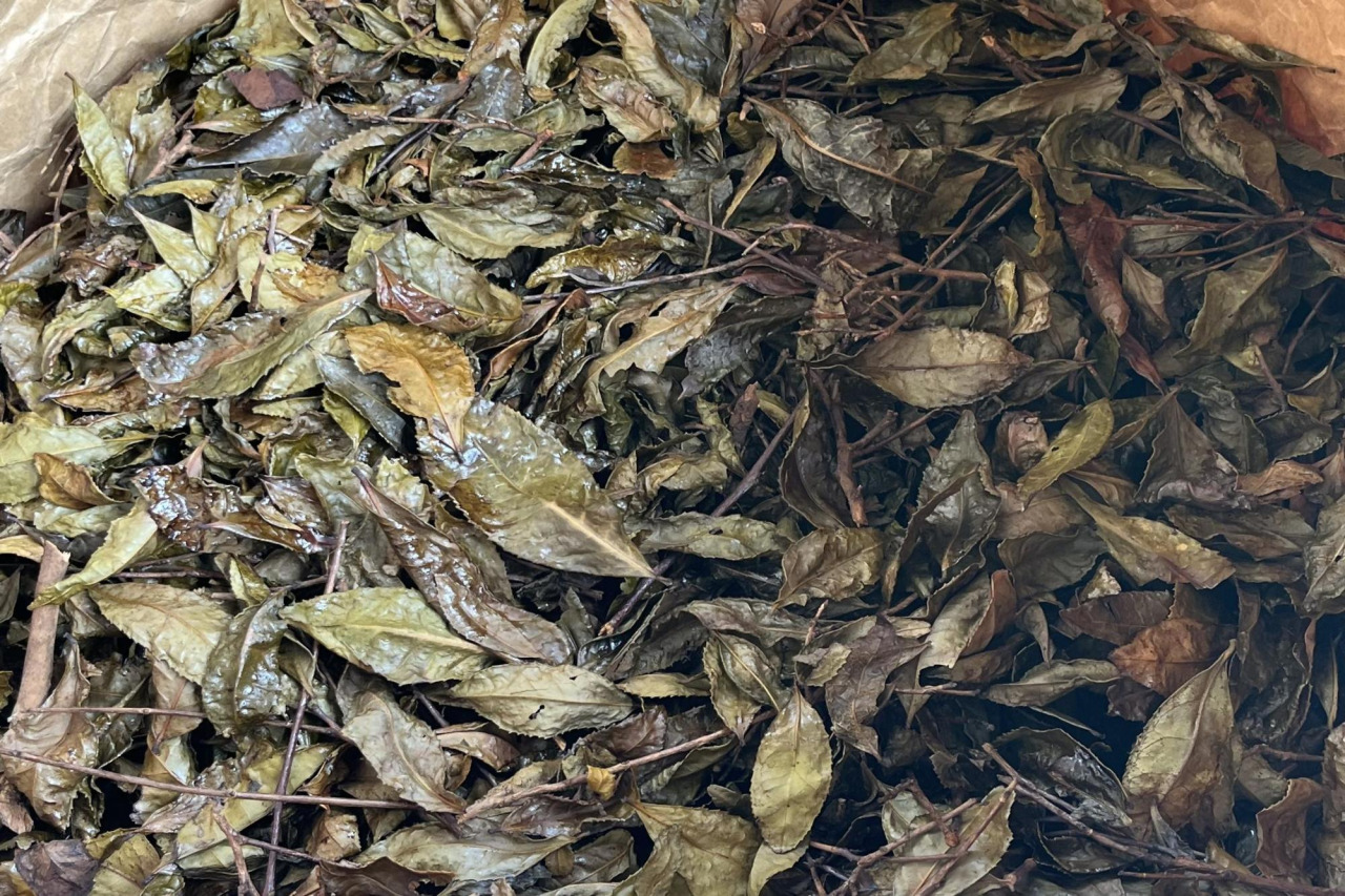 夏まで大きく育ったお茶の葉を枝ごと刈り取り、大きな鉄釜で1時間ほど煮出し、水気をきって真夏の炎天下で天日干しし、乾燥させていきます。