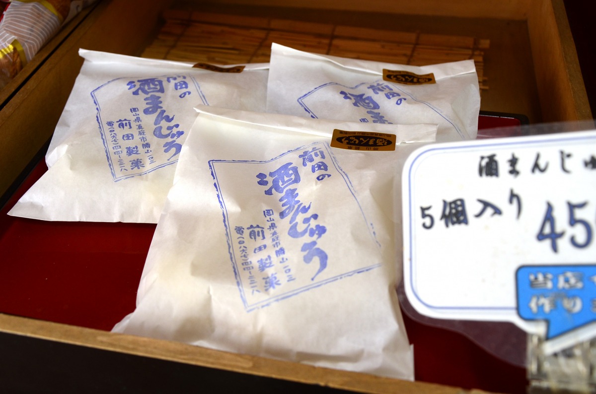 水を一切使わず、酒かすとほんの少しの山芋、御前酒「美作」をたっぷりと使った日本酒のコクそのものが生きた酒まんじゅう。