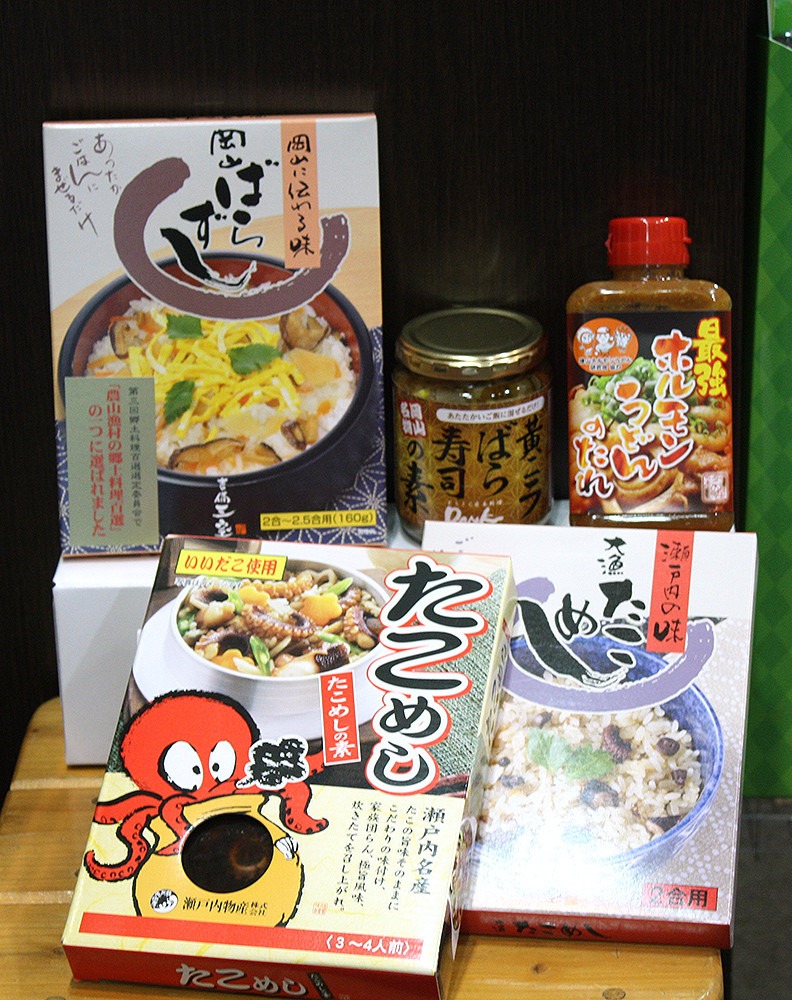 ご当地グルメの素 マイプランに追加 マイプランから削除 カテゴリ ご当地グルメ 炊きたてご飯に混ぜるだけでできる、郷土料理「岡山ばらずし」や、ご飯と一緒に炊き込む「たこめしの素」、「津山ホルモンうどんのたれ」や「ひるぜん焼そばたれ」など岡山ご当地グルメの味が自宅で再現できます! 基本情報 ※営業時間や定休日、料金など変更されている場合がありますので、お出かけの際は問い合わせ先にご確認ください。