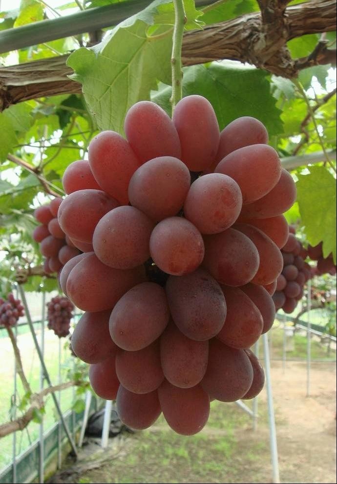 気品漂うワインレッドの美しい姿をしたぶどう。肉質がやわらかで独特の食感をもち、大粒で種がないので大変食べやすいです。甘みは強く、果汁たっぷりなので、みずみずしく、ジューシーで甘味と酸味のバランスが絶妙の日本人好みの味です。日本でも珍しい冬のぶどうです。