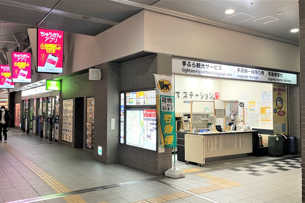 JR岡山駅の2階新幹線改札口すぐの「ねこのてステーション」では、手荷物関連サービスを行っています。お手頃価格で手荷物を持たずに、手ぶらで観光・ビジネスに直行できるお役立ちサービスです。