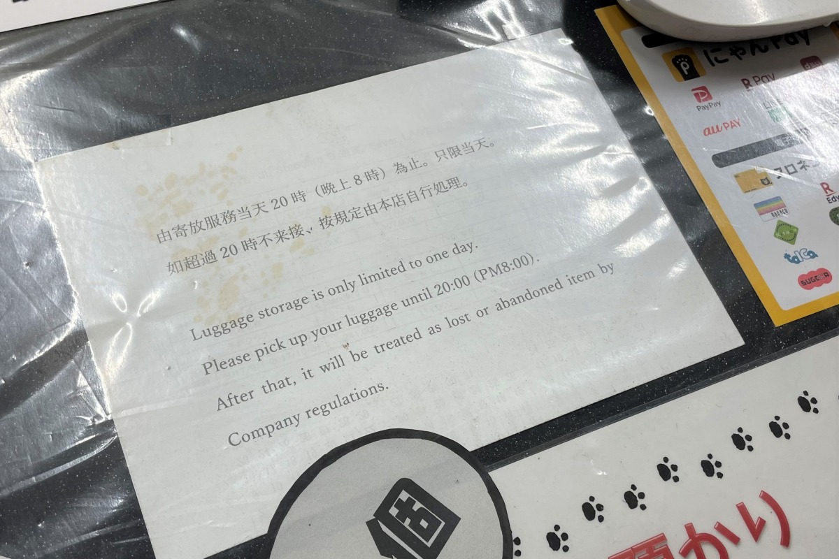 ・手荷物一時預かりサービス:600円(3辺合計120cm内、15kgまで)、800円(3辺合計160cm内、25kgまで)