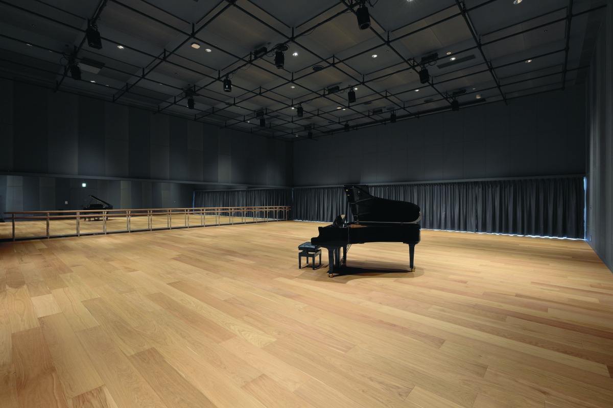 演劇、ダンス、伝統芸能、オペラ、ミュージカル、バレエなどの幅広い公演に対応でき、大掛かりな舞台演出が可能な大劇場(1,753席)、可動型音響反射板が設置でき、生音をいかした公演も可能な中劇場(807席)、固定の舞台・客席を持たず、自由に使える平土間空間の小劇場(想定最大収容席数300席)のほか、小規模公演や日常の練習にも使えるアートサロンや練習室、ギャラリー等、クリエイティブな文化芸術活動を支える設備が充実。3階にはボックスオフィス(TEL:086-201-2200)があり、公演チケットの購入が可能です。