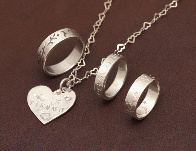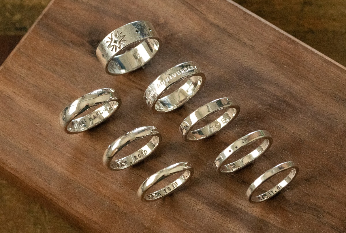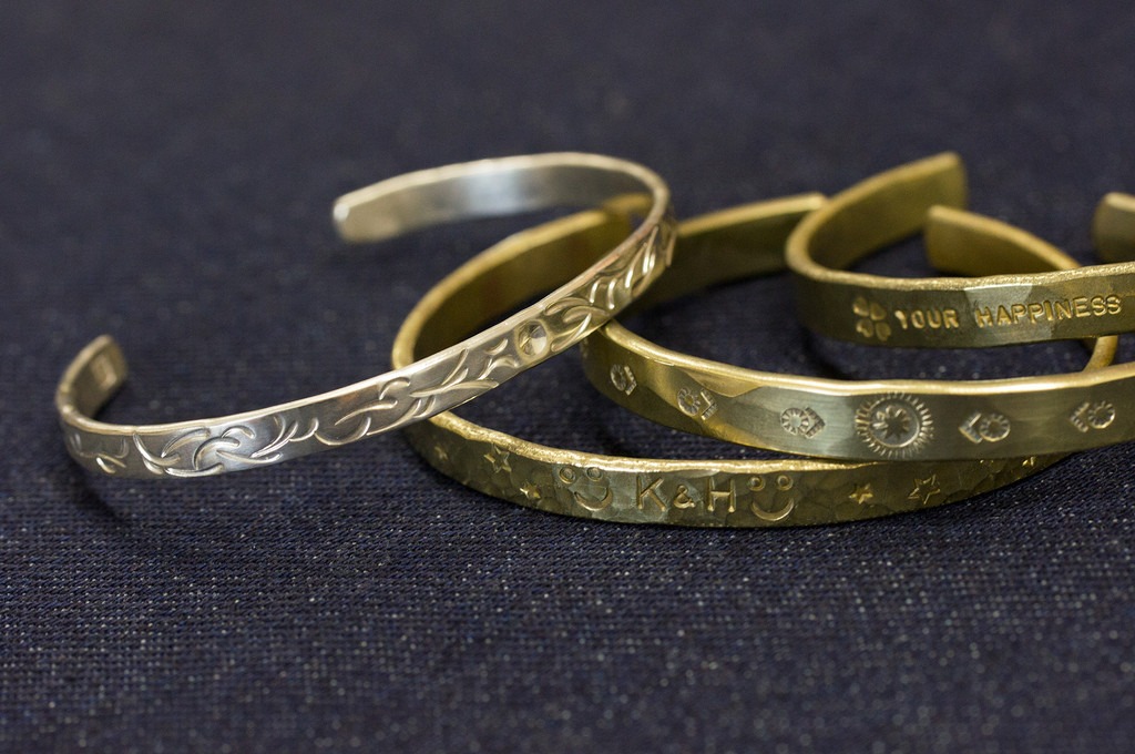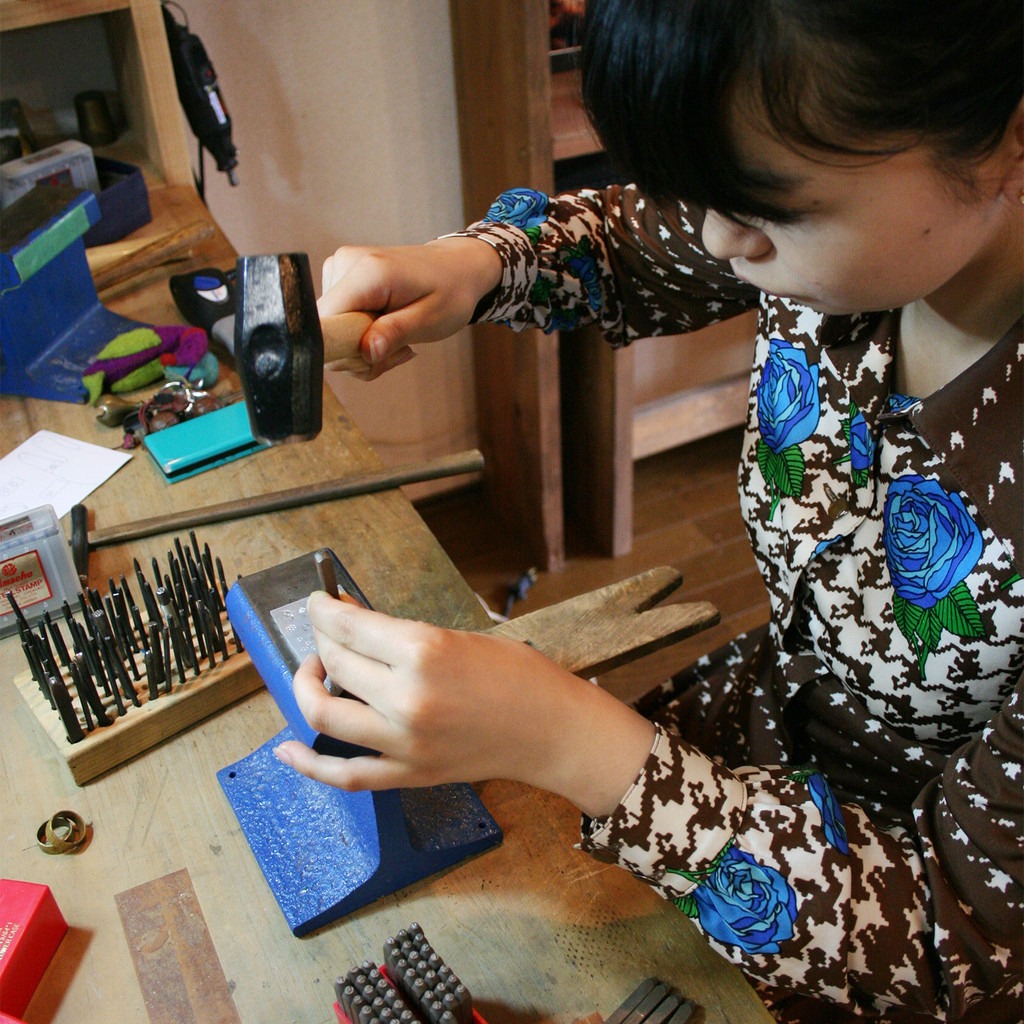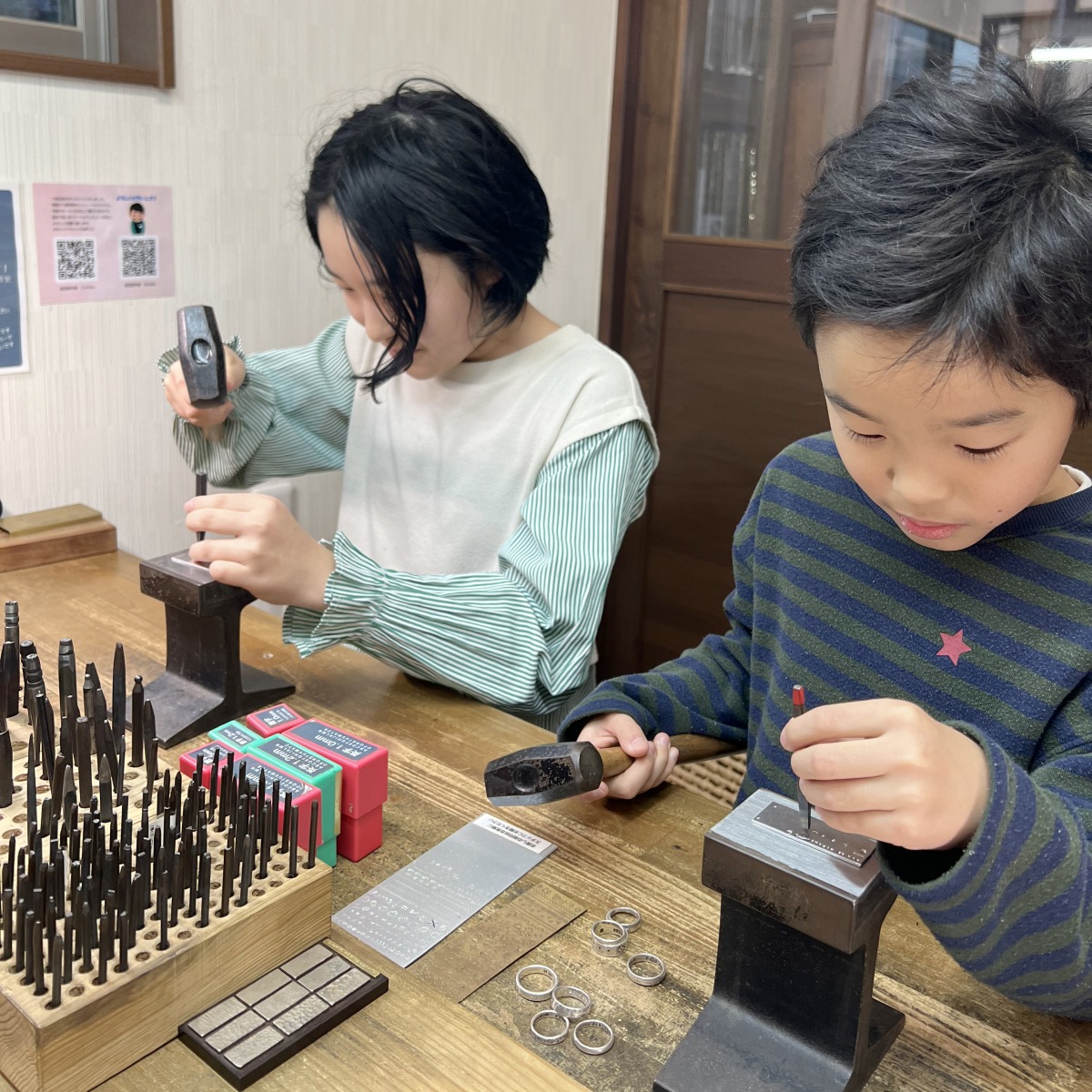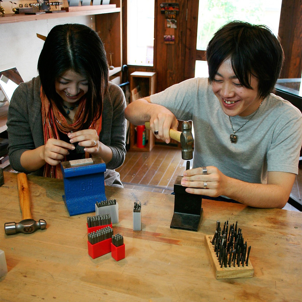 簡単なアクセサリー(リングやトップ等)を制作出来きる体験コースがあります。材料(silver)に刻印で文字や模様を打って仕上げます。時間制限はありません。約2時間程度で完成します。