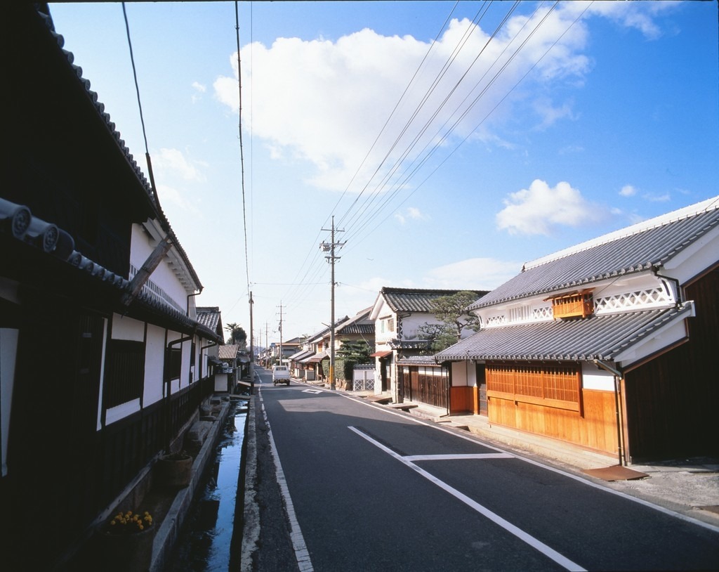 豊臣秀吉の正室・ねねの実兄を藩祖とする木下家2万5千石の陣屋町。保存地区は陣屋町のうちの町人町にあたります。足守の特徴として、格子が良好に保存されていることがあげられます。千本格子や親子格子など端正な格子が取り付けられ、生活の中から生み出された比例の美学を楽しむことが出来ます。平入りの奥行きある商家が並ぶ、静かで落ち着いた町並みです。