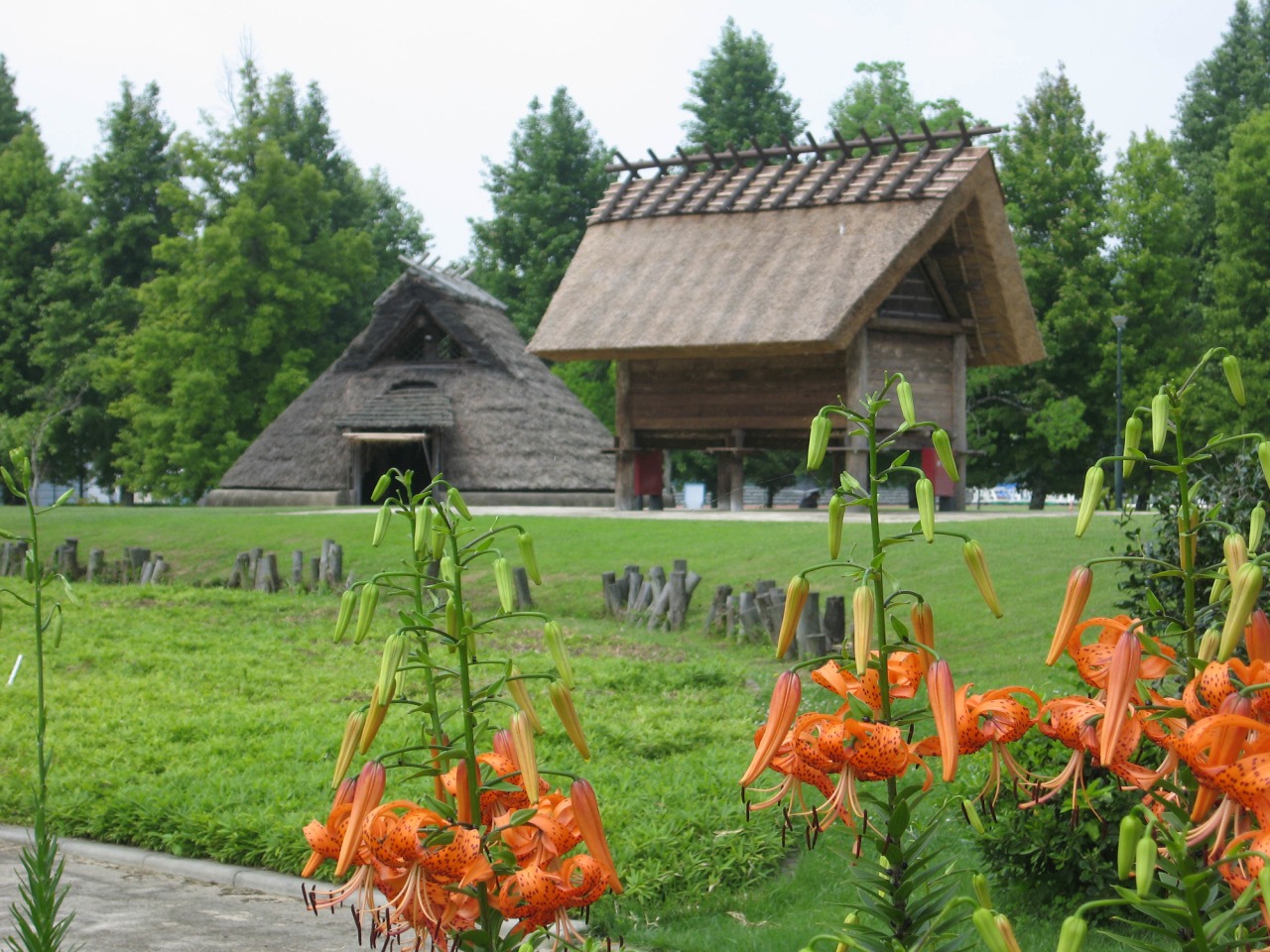 現在の岡山県総合グラウンド一帯に広がる縄文時代晩期から弥生・古墳時代にかけての大規模な遺跡。昭和43年の発掘調査で、全国ではじめて弥生時代前期の集落と水田が一緒に確認されたことで大きな注目を集め、国指定史跡となりました。発掘調査に基づき復元された「津島やよい広場」では、竪穴住居や掘立柱建物、高床倉庫などのほか、当時の水田や湿地などを自由に見学できます。また、隣接する「遺跡&スポーツミュージアム」では、ここで出土した土器や石器などを見ることができます。