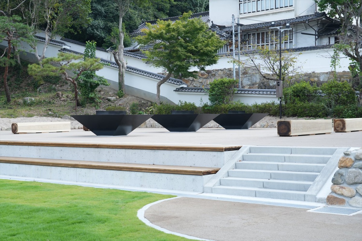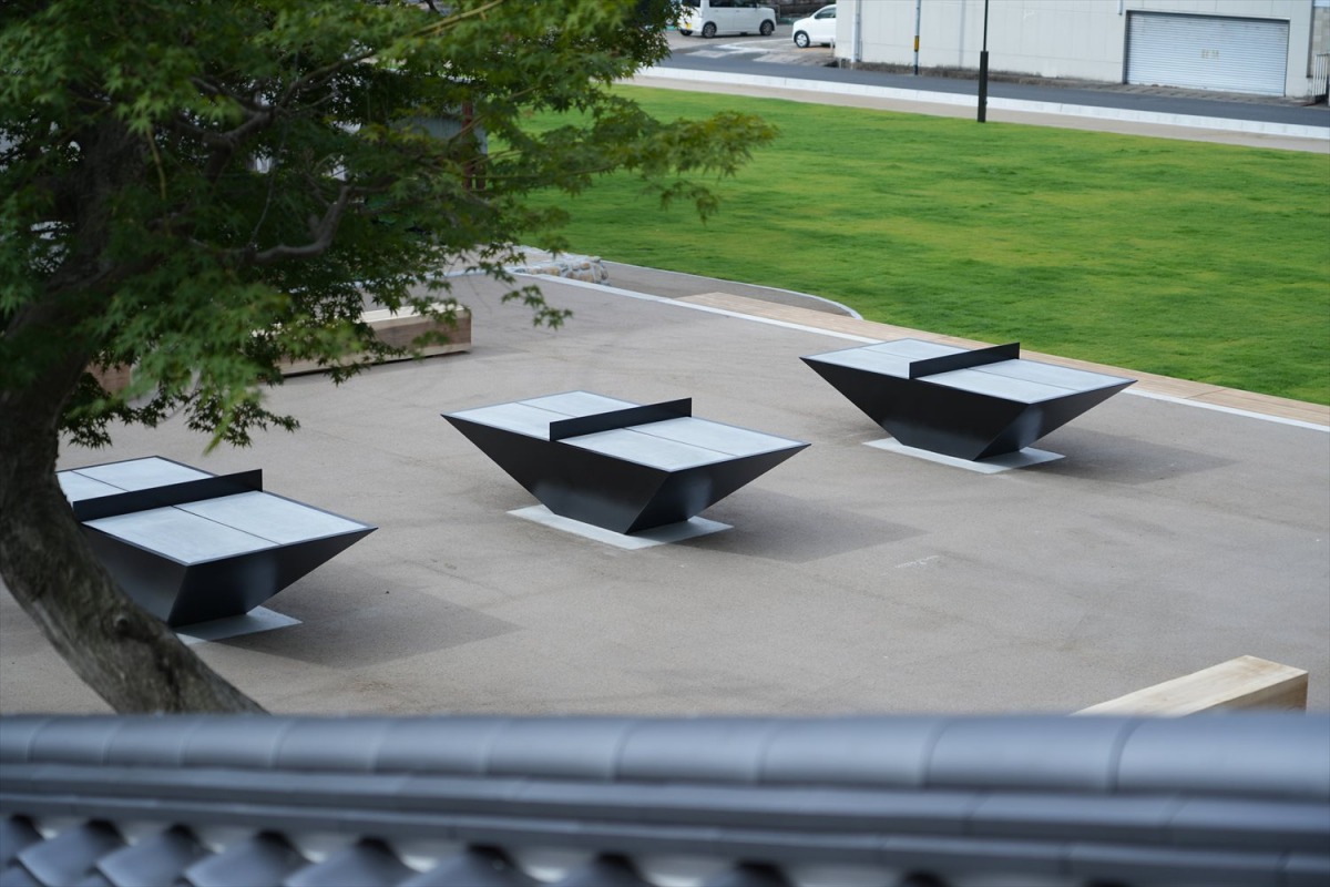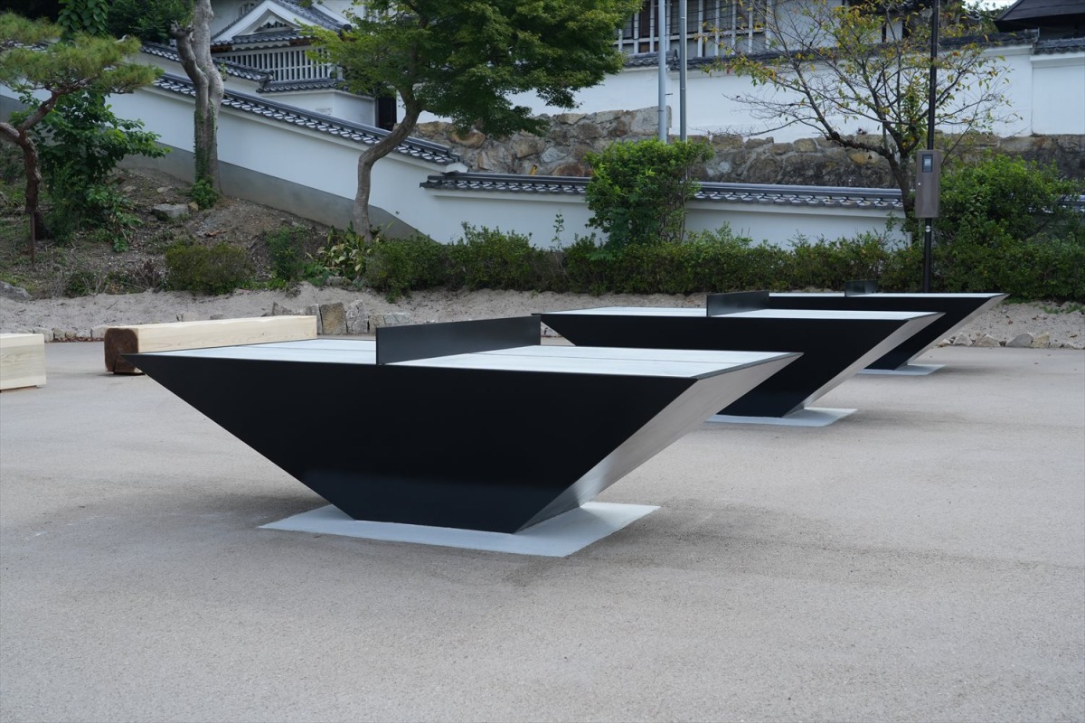 津山市の文化ゾーンの中心地にある城下スクエア(津山国際ホテル跡地)の「津山ピンポン広場(Tsuyama Ping Pong Platz)」は、第1回の「森の芸術祭 晴れの国・岡山」で生まれたものです。ジャコモ・ザガネッリ氏が市民の交流の場となる屋外卓球場をつくりました。