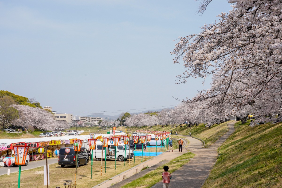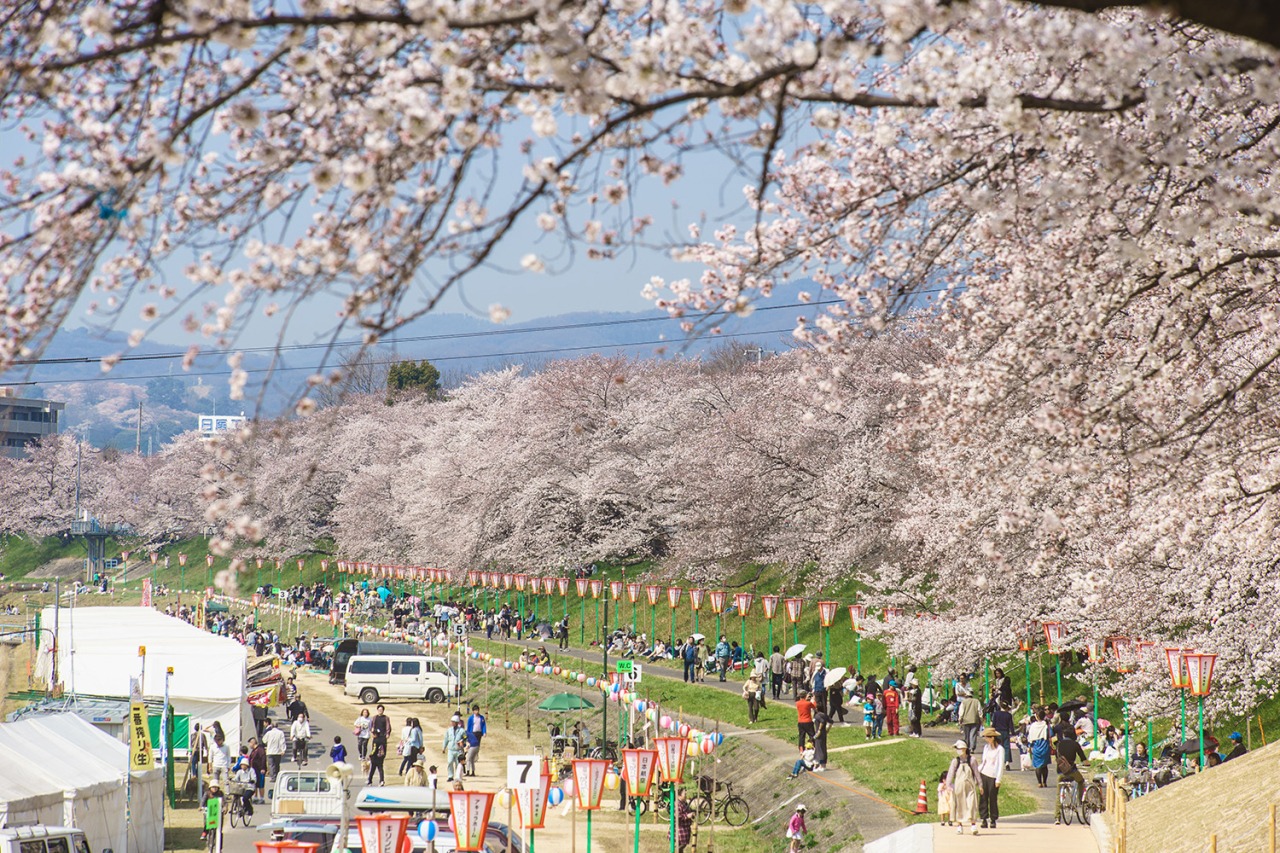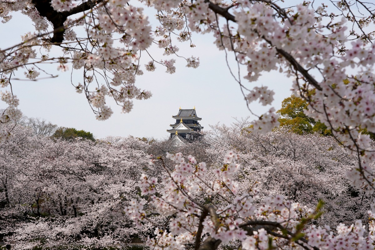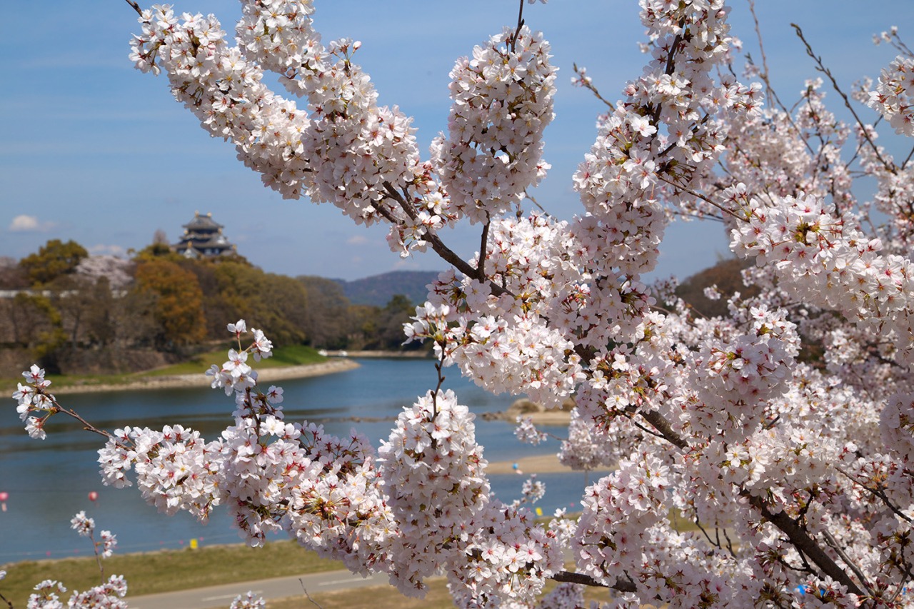 岡山市内を流れる旭川の東岸約1kmに渡り桜が咲き誇る、市街地の定番お花見スポットです。桜の開花時期に合わせて毎年「岡山さくらカーニバル」を開催。夜間は桜並木がライトアップされ、幻想的な夜桜見物を楽しむことができます。
