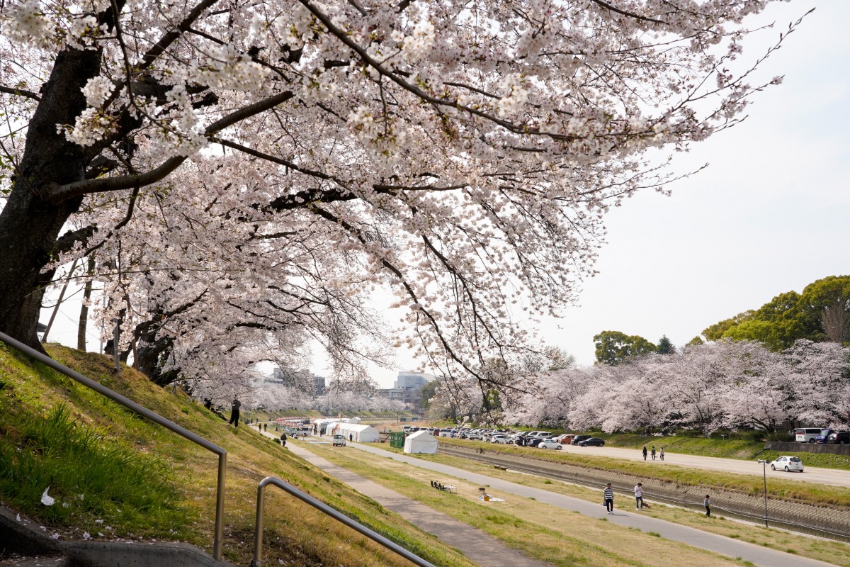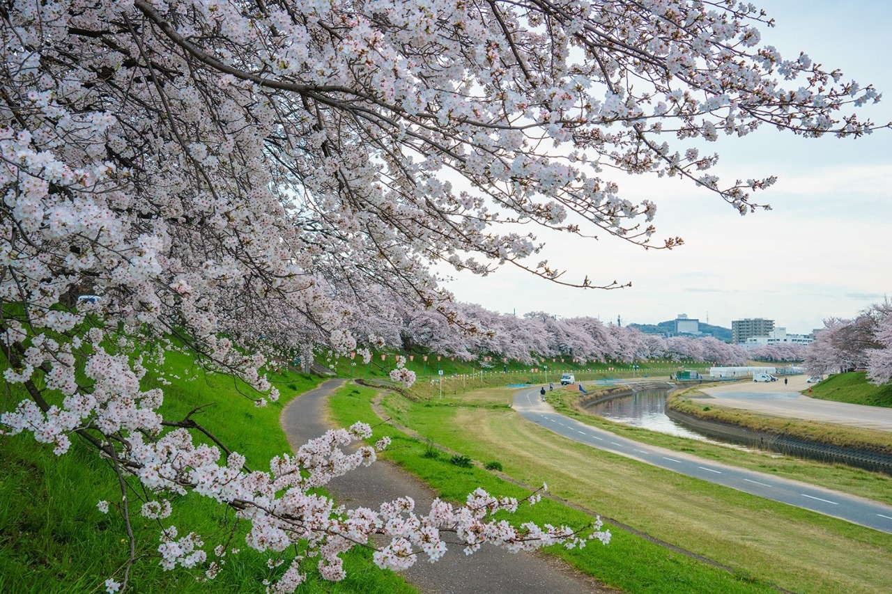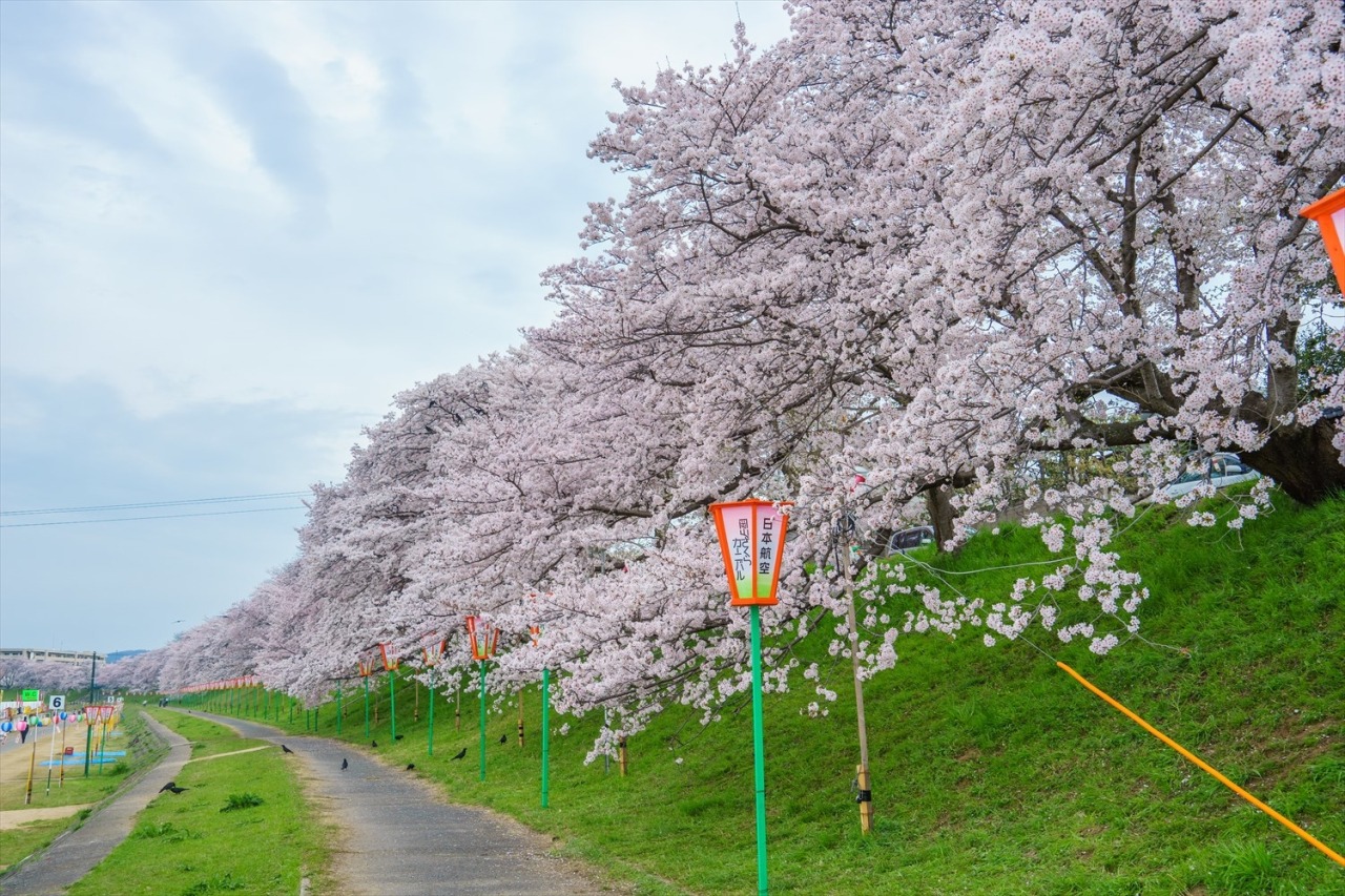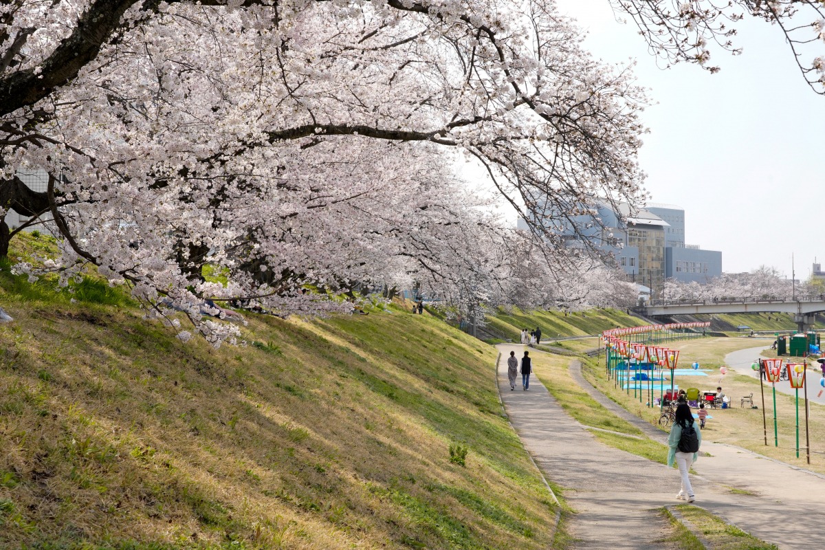 岡山市内を流れる旭川の東岸約1kmに渡り桜が咲き誇る、市街地の定番お花見スポットです。桜の開花時期に合わせて毎年「岡山さくらカーニバル」を開催。夜間は桜並木がライトアップされ、幻想的な夜桜見物を楽しむことができます。