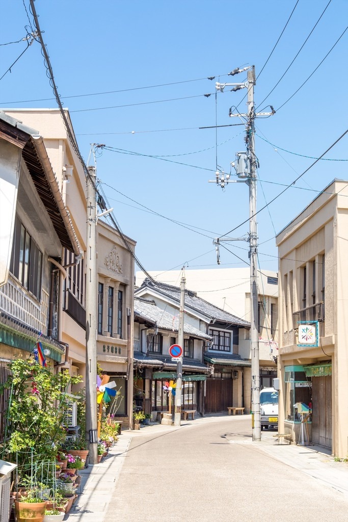 全国的にもめずらしい看板建築が残る町並み