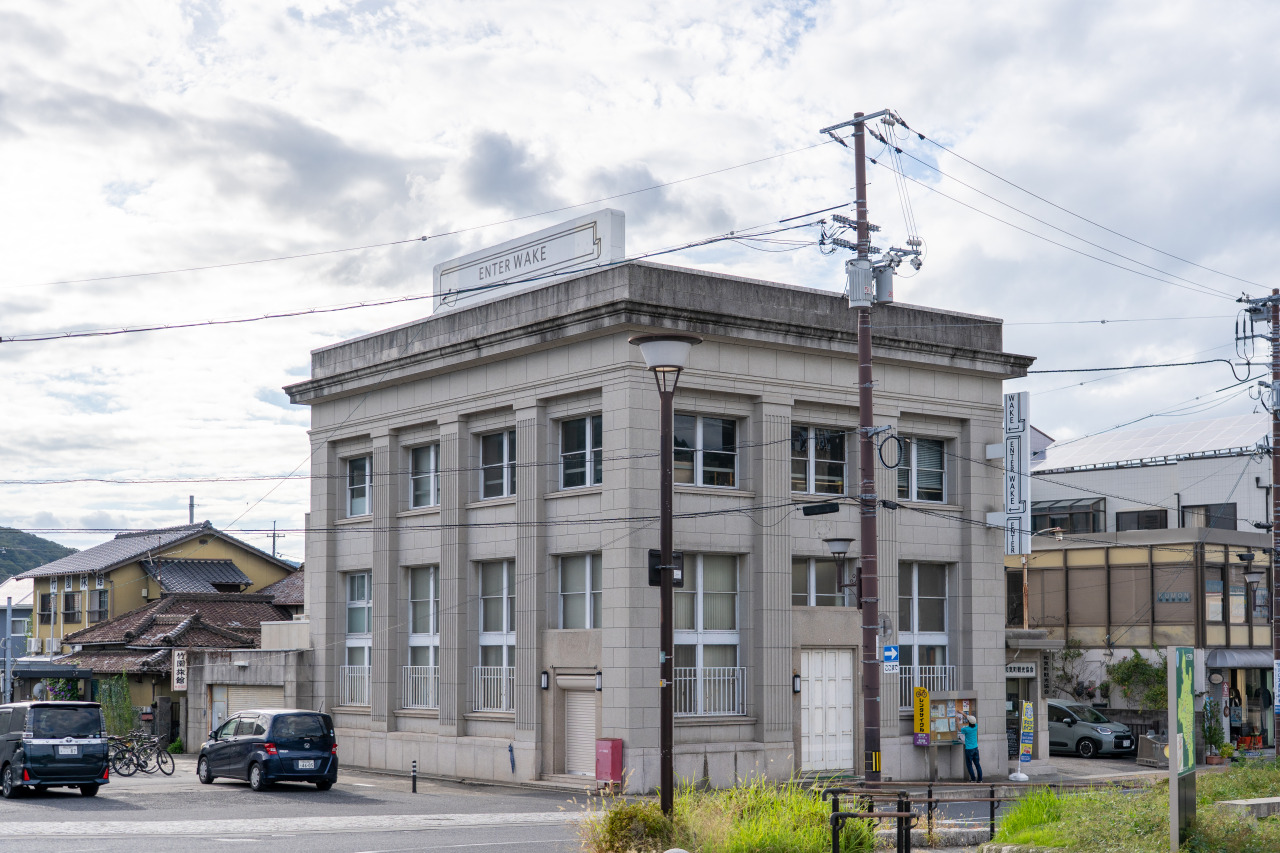 JR和気駅前の旧中国銀行跡地を利用した多目的スペース。1階には「ENTER WAKE キッチン」「観光案内所」、3階には「ENTER WAKE BASE」があり、様々な方のご利用ができます。レンタサイクルの貸し出しもしています。