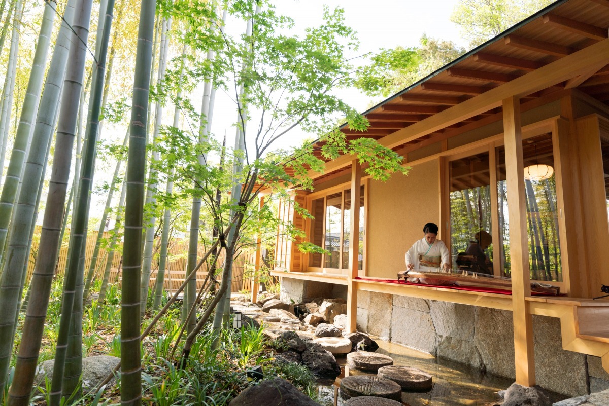 岡山県の食材を活用したイタリアンレストランと、白桃やマスカットのアイスが自慢のパーラー、一般開放されている広大な竹林庭園、野外ステージではライブイベントも定期的に開催されている路地奥の注目スポットです。別棟にはきび美ミュージアムがあります。