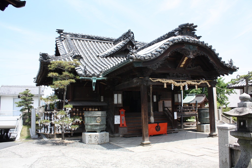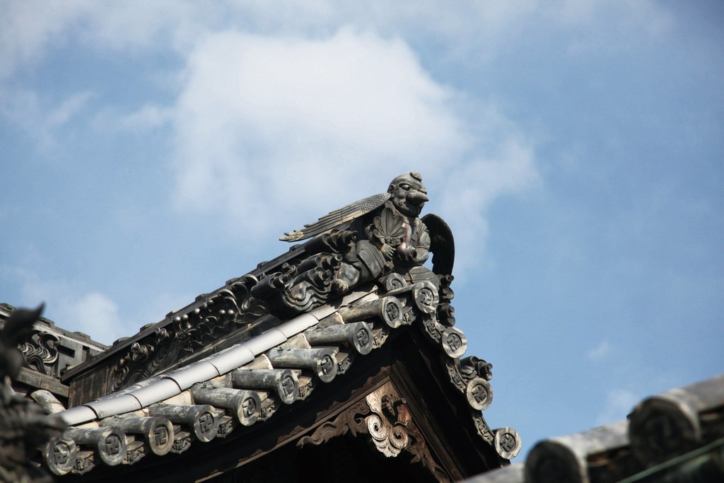 1658年(万治元年)、備中松山藩主水谷公が玉島港を開く際、干拓工事の成功を祈って出羽の羽黒神社を勧請した神社です。屋根の上には烏天狗の鬼瓦があり、今では町おこしのシンボルとなっています。