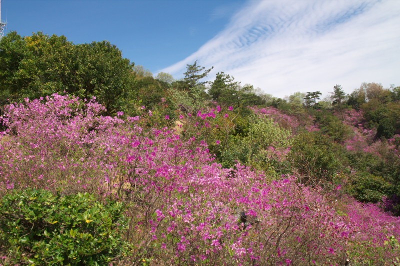標高134m、鷲羽山連峰のひとつ。山頂一帯からは瀬戸内海と備讃瀬戸の島々を眺めることができ、秋から春にかけて、水島灘の向こうに沈む美しい夕日は格別です。三百山はツツジの名所でもあり、例年4月初旬~下旬には、コバノミツバツツジやヤマツツジの花で山の斜面が鮮やかに彩られます。また、1周約20分の遊歩道ではさまざまな野鳥も観察できます。