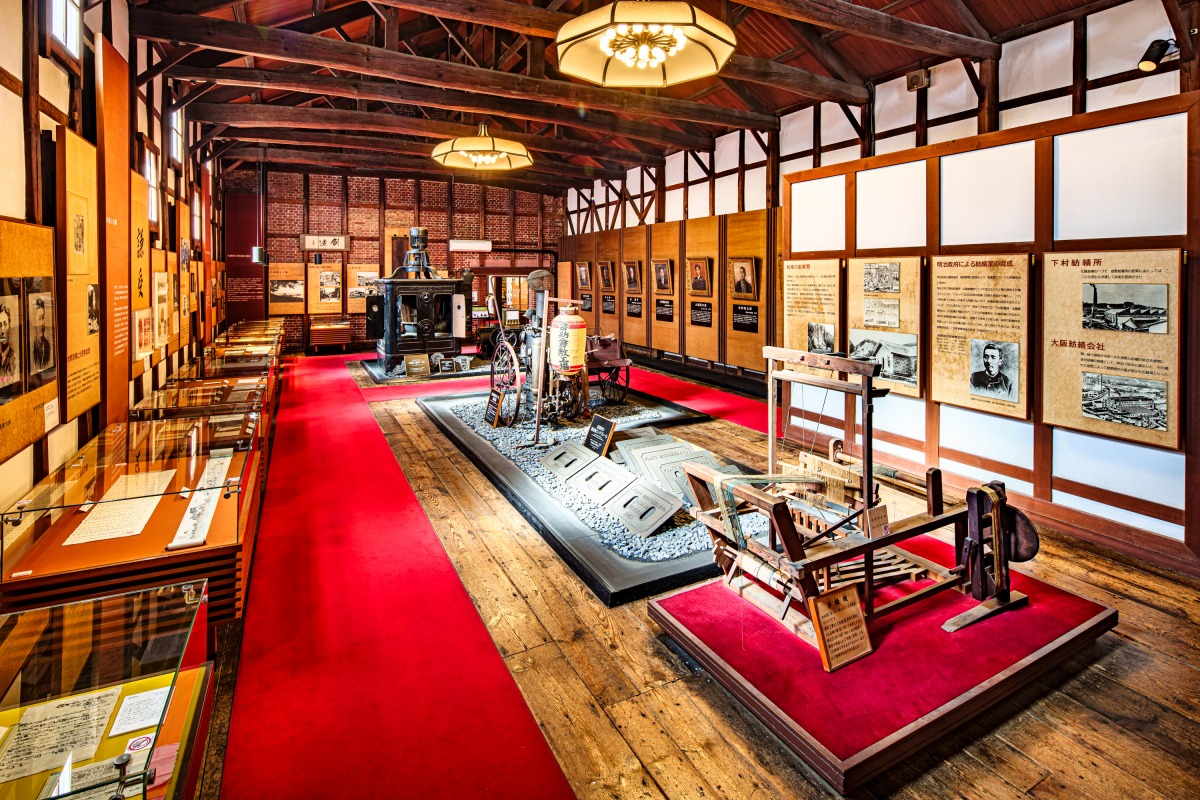 倉敷アイビースクエア敷地内にある、クラボウの記念館。貴重な文書や写真、映像、模型などでその軌跡を紹介しています。創業時の原綿倉庫を改装しており、貴重な歴史的建造物です。