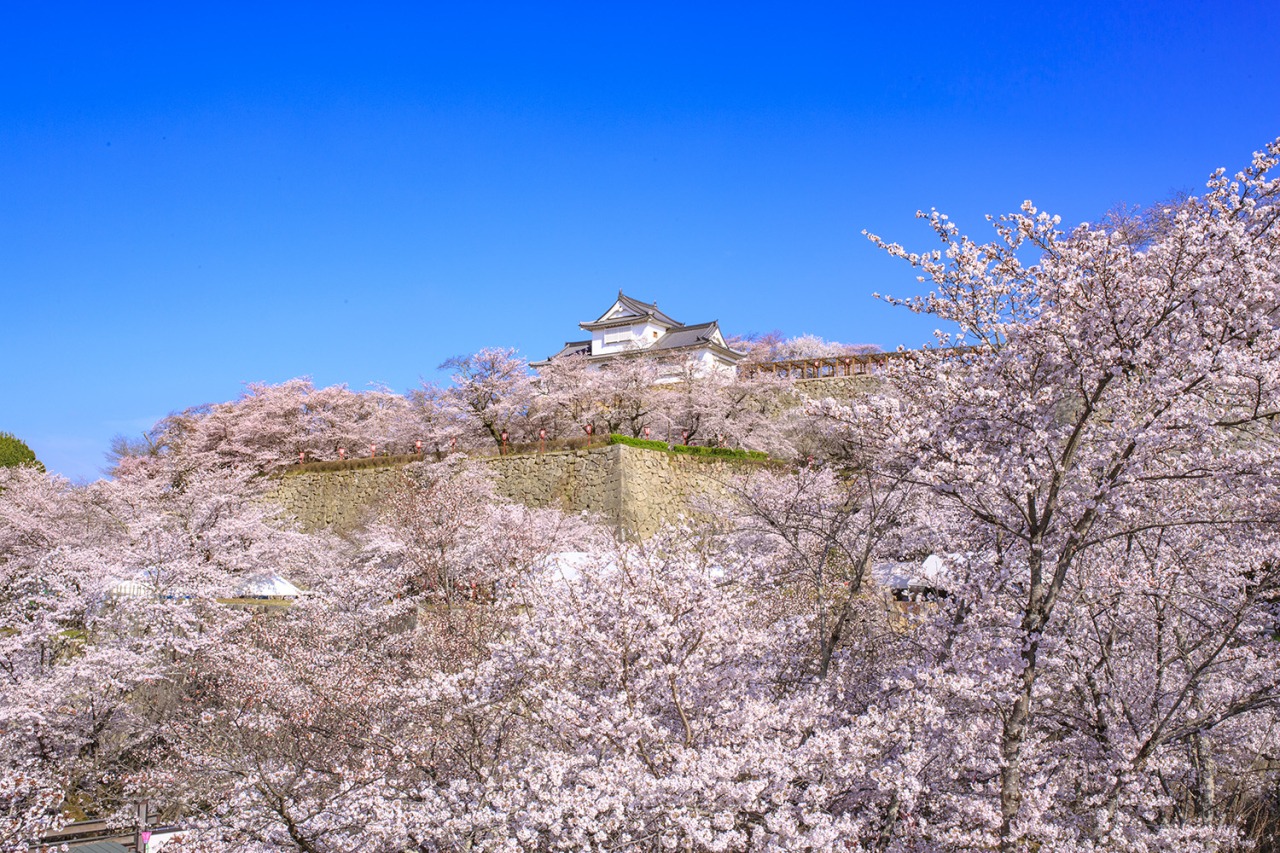 「日本100名城」「日本さくら名所100選」に選ばれている津山市のシンボル。本能寺の変で討死した森蘭丸の弟、森忠政が1616年に築城しました。明治の廃城令によって建造物はすべて取り壊されましたが、2005年に築城400周年を記念して備中櫓(びっちゅうやぐら)が復元。約45mの高さを誇る石垣とともに新たな人気スポットとなっています。また、県内でも1、2を争う桜の名所として知られ、約1,000本の桜が咲き誇る景観は見事です。石垣の上から眺めるライトアップされた桜も圧巻です。