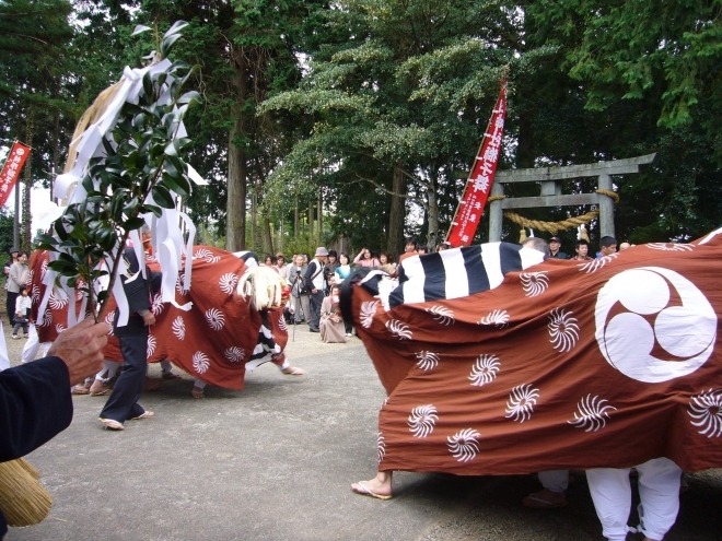 上横野と下横野地区の氏神様で、獅子舞は岡山県指定重要無形民俗文化財です。