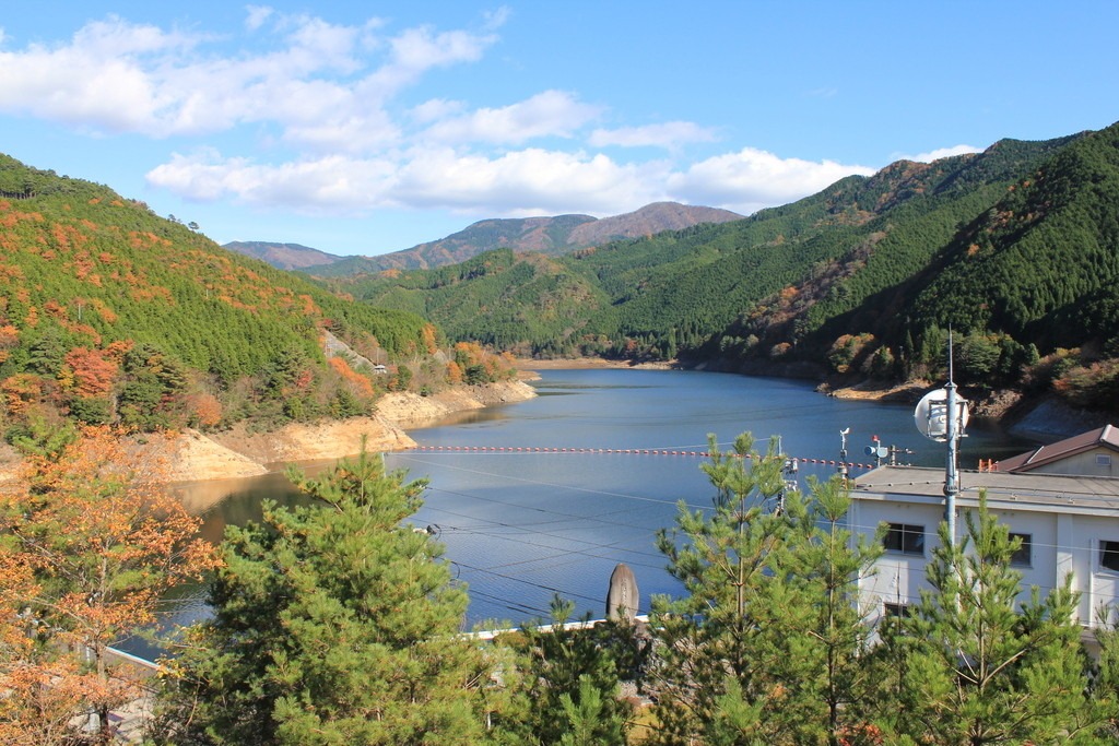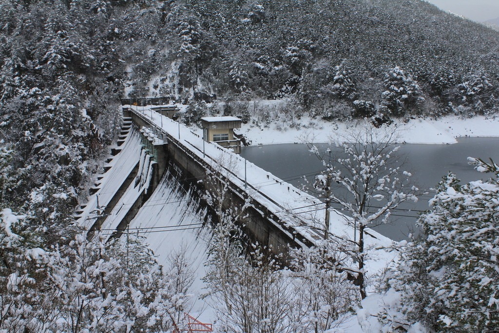 洪水調整や農業用水の確保、導水落差を利用する発電など多面的機能を有し、岡山県で農地防災ダムとして最初に築造された重力式コンクリートダムです。新緑や秋の紅葉が美しく、上流にはキャンプ場、温泉等があり自然をたっぷり満喫できます。