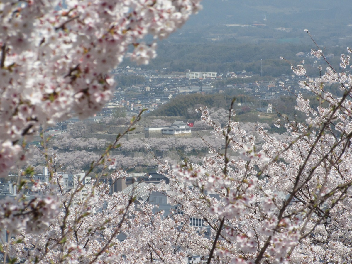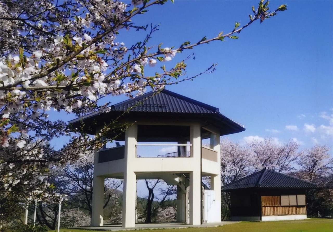 津山城(鶴山公園)をはじめ、津山市街地が一望できる神南備山にある2階建ての展望台。かわらぶきの六角形の建物です。春は周辺に桜が咲きます。