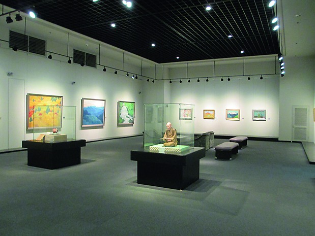 笠岡ゆかりの芸術家の日本画、洋画、陶芸、木工、彫刻、書を展示しています。