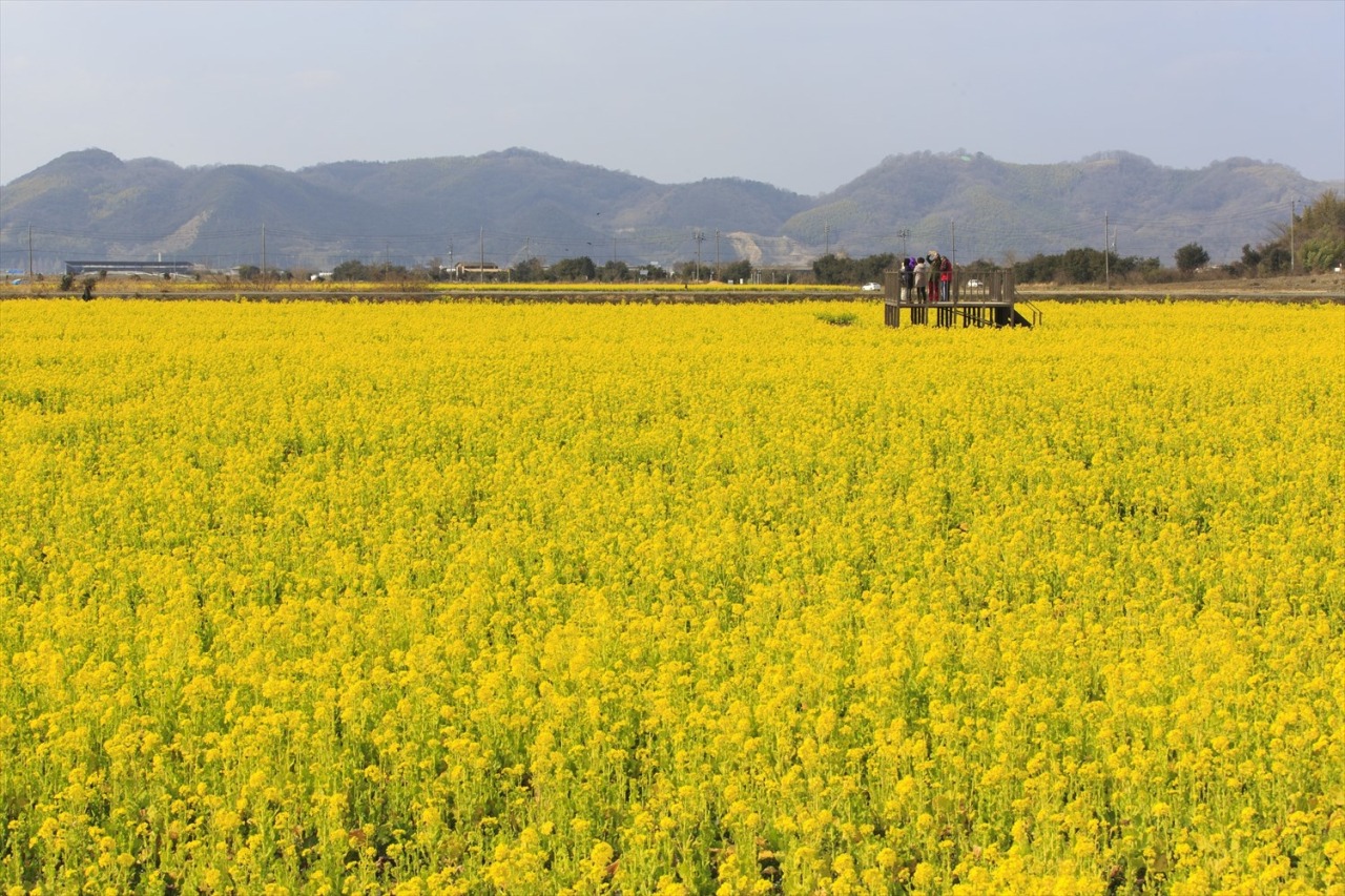 道の駅笠岡ベイファームに隣接する広大な花畑。3~4月にかけては約1,000万本の菜の花が咲き、一面に黄色い絨毯が敷かれた風景が広がります。4月下旬~5月には約1,000万本のポピー、夏には約100万本のひまわり、秋には約3,000万本のコスモスが咲き誇る景色に感動! 展望台からの眺めはとても素晴らしいと評判です。四季を通じて、スケールの大きい花畑を満喫できます。