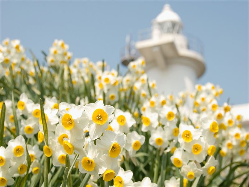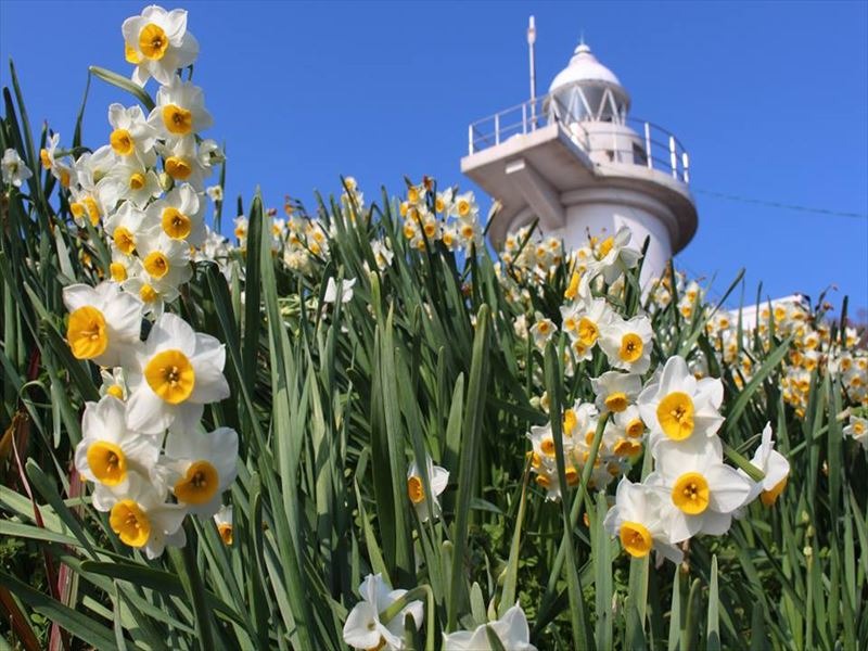 潮風に乗ってあたりに甘い香りを漂わせる数万本の水仙