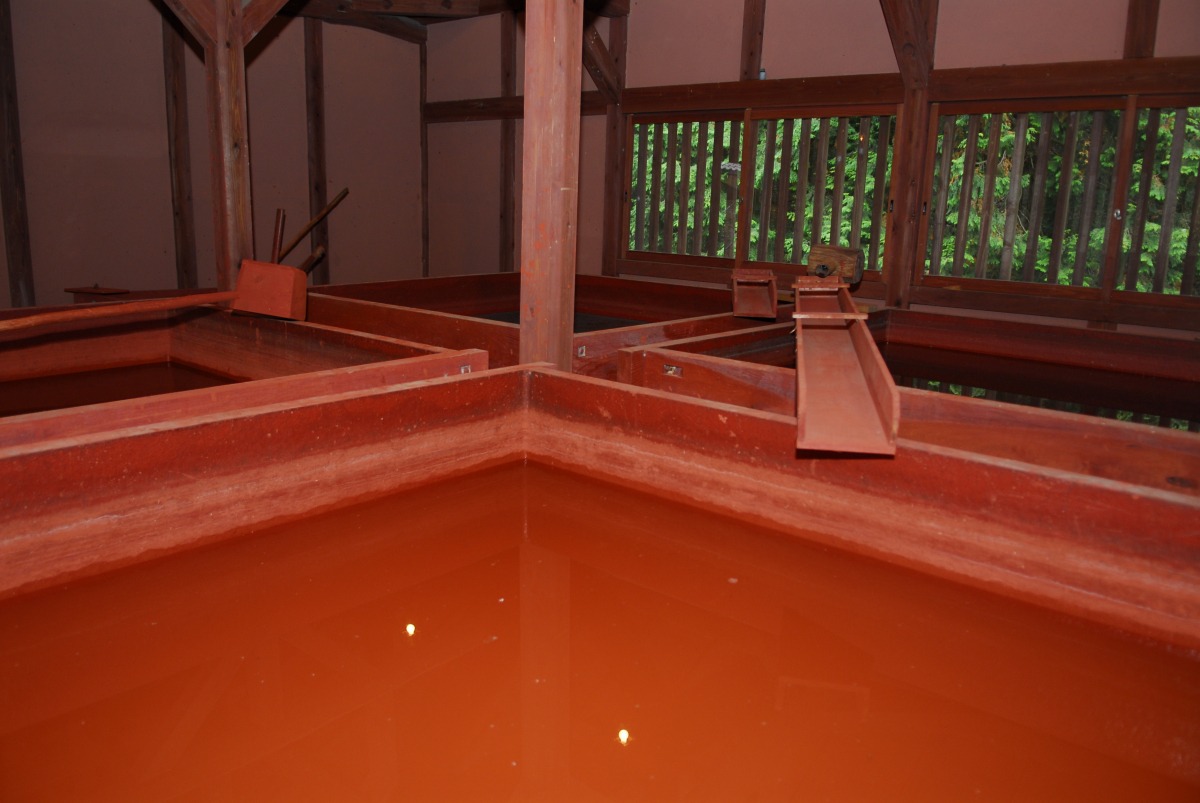 ベンガラは赤色顔料として宝永4(1707)年に吹屋で開発され、特産地として栄えました。ベンガラ館は明治の頃のベンガラ工場を復元したもので、当時の製造工程を紹介しています。