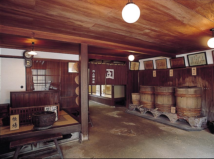 古い商家の並ぶ本町通りでひときわ目を引く池上邸は、享保年間八代将軍吉宗の頃、この地で小間物屋をはじめ、その後両替商、高瀬舟の船主等を経て醤油製造で財をなした豪商の家です。