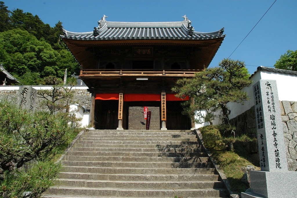 寛和年間(985~987)花山法皇の開基といわれています。真言宗に属し、本尊は薬師瑠璃光王如来で、50年毎に秘仏御開帳法要があります。昭和58年に「男はつらいよ」のロケが行われました。