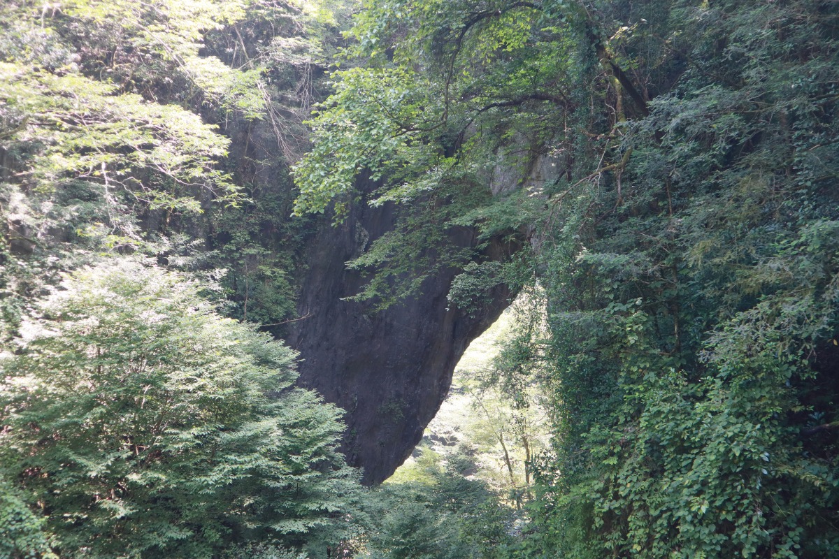国の天然記念物にも指定されている、高さ約40mの天然の石門。洞口から吹き出す低温多湿な空気によって夏でも涼しく、高山性や北方系の珍種のコケの宝庫です。毎年7月初旬には駐車場から羅生門までの遊歩道でヒメボタルが見られます。駐車場横にある「羅生門さくら公園」には、11種類約700本の桜があるため、4月初旬から約1ヵ月もの間お花見が楽しめます。