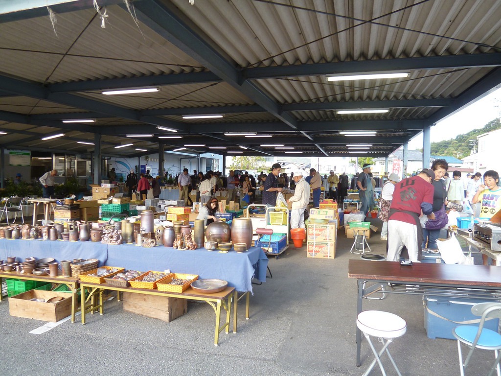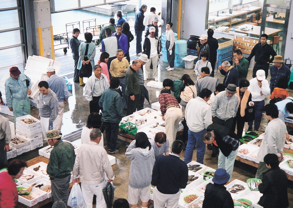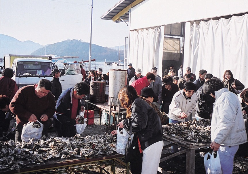 地元でとれた新鮮な魚介類を販売しています。毎週日曜日には朝早くから魚介類だけでなく、農産物・パン・タマゴ・果物・タコ焼きなどの販売も行われ多くの人でにぎわっています。冬季には、地元のかき生産者がカキ(殻付きカキ)の販売も行います。