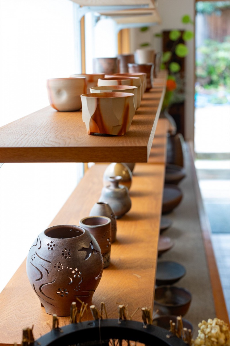 備前焼窯元六姓のひとつ、木村家の窯です。17代木村桃山氏と木村英昭氏らの作品を販売しているほか、陶芸体験も可能(要予約)。伊部駅から徒歩2分の位置にあり、窯などの見学もできます。英語、スペイン語通訳可。作品は小物(アクセサリーや箸置き)から食器、花器、茶道具、オブジェなど幅広く展示販売しています。