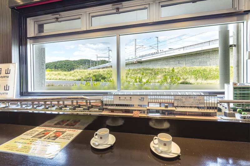 全長18mのNゲージ(鉄道ジオラマ)にお子様も大興奮!Nゲージと窓から見える本物の新幹線を間近で眺めながら、同時にお食事も楽しめるのは日本で唯一!ここだけ。座席は食堂車をイメージして作られています。天然温泉「長船温泉」も人気。岡山県のお土産も購入できます。