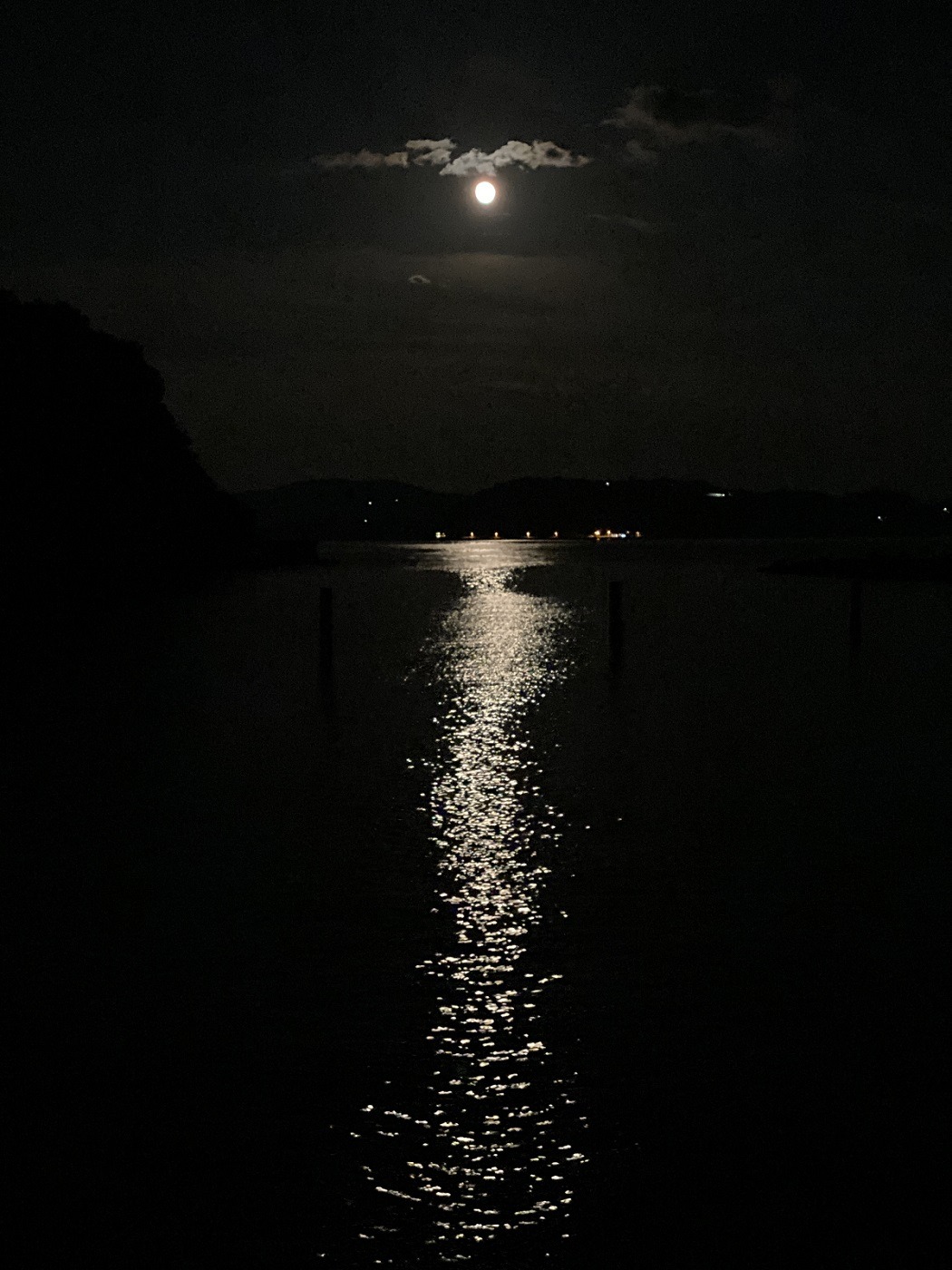 ムーンロードは、満月やその前後に見ることができる月に向かって海面に出来る明かりの真直ぐな道です。
